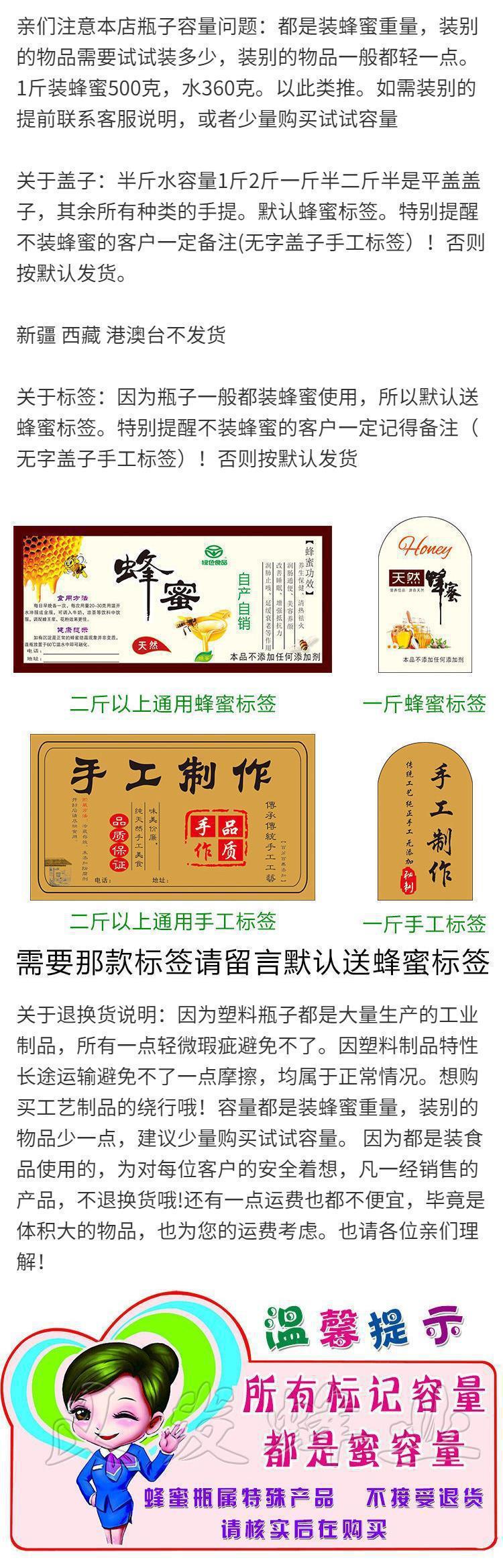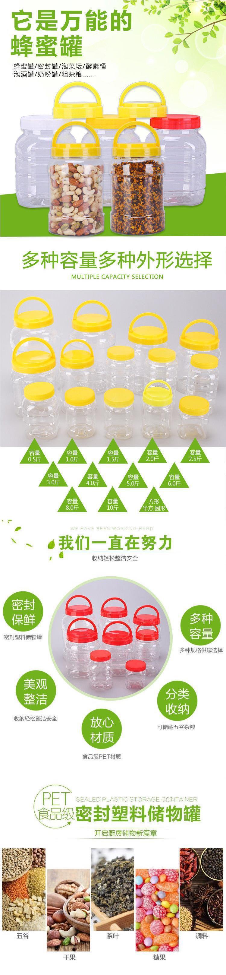 허니 병 플라스틱 병 진 팩 두꺼운 투명 플라스틱 식품 등급 병 진 꿀 항아리 밀도