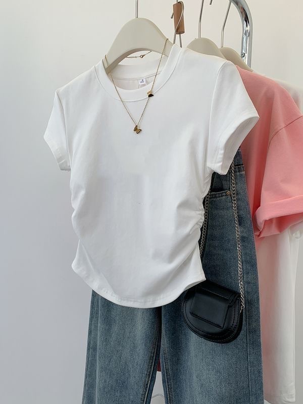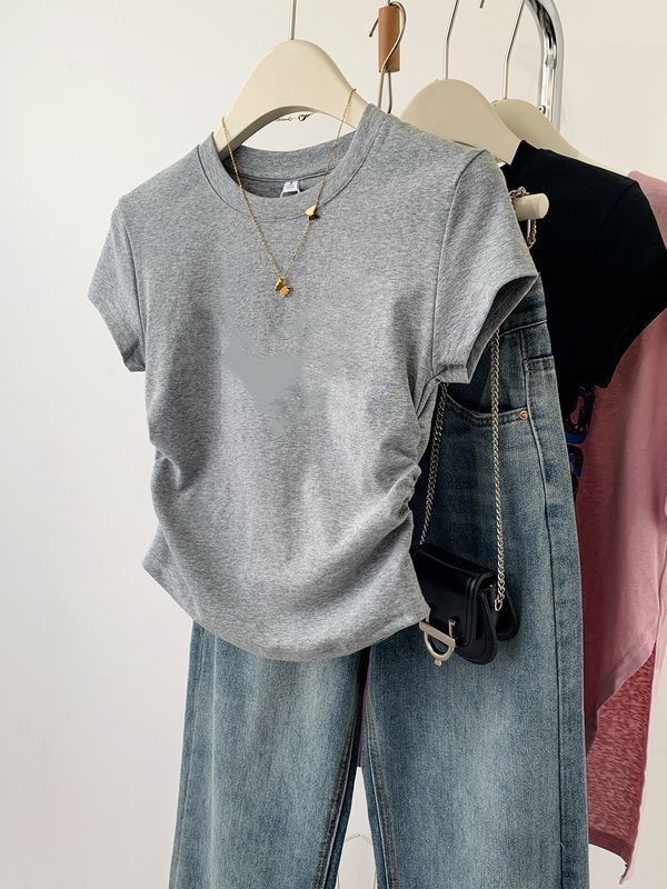 그레이 디자인 센스 니쉬 짧은 반팔 티셔츠 여성 여름 새로운 디자인 센스 슬림 핏 숄더 티셔츠 탑 트렌디스토어 가기