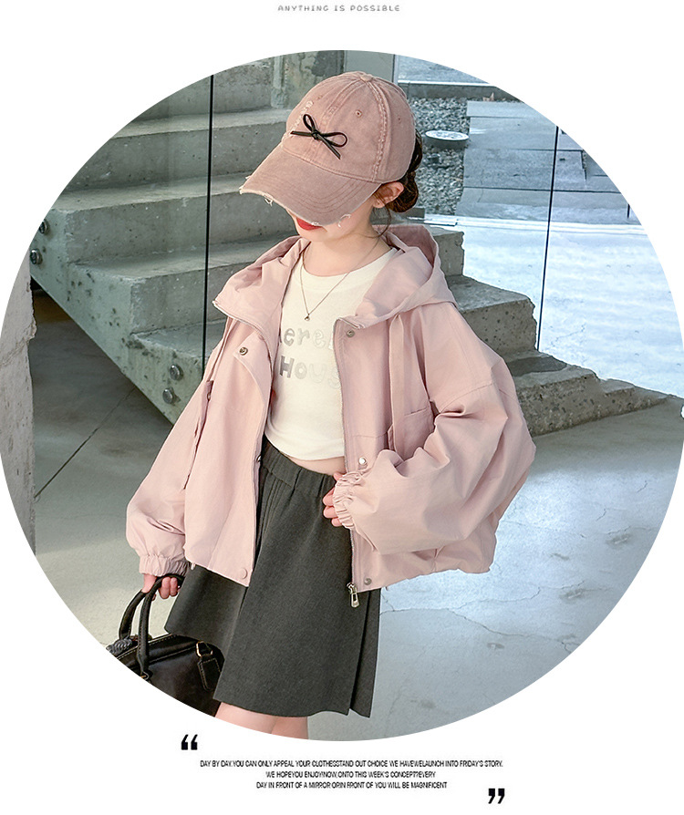소녀 짧은 코트 봄과 가을 2025 새로운 어린이 서양식 대형 어린이 느슨한 캐주얼 후드 재킷 탑스토어 가기