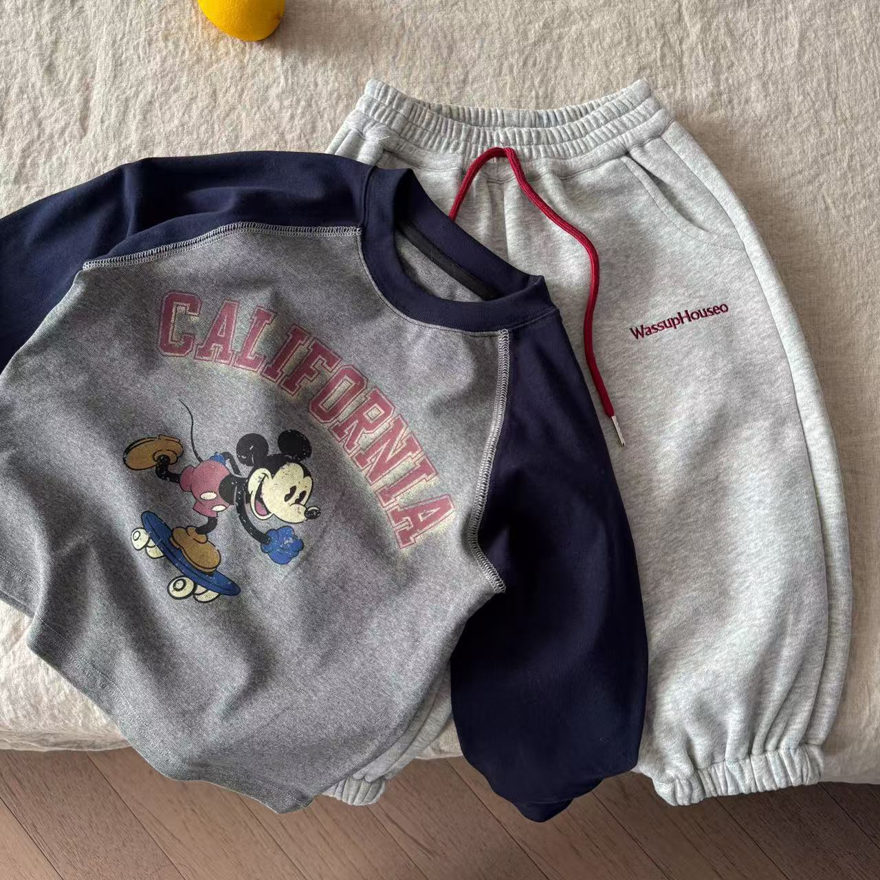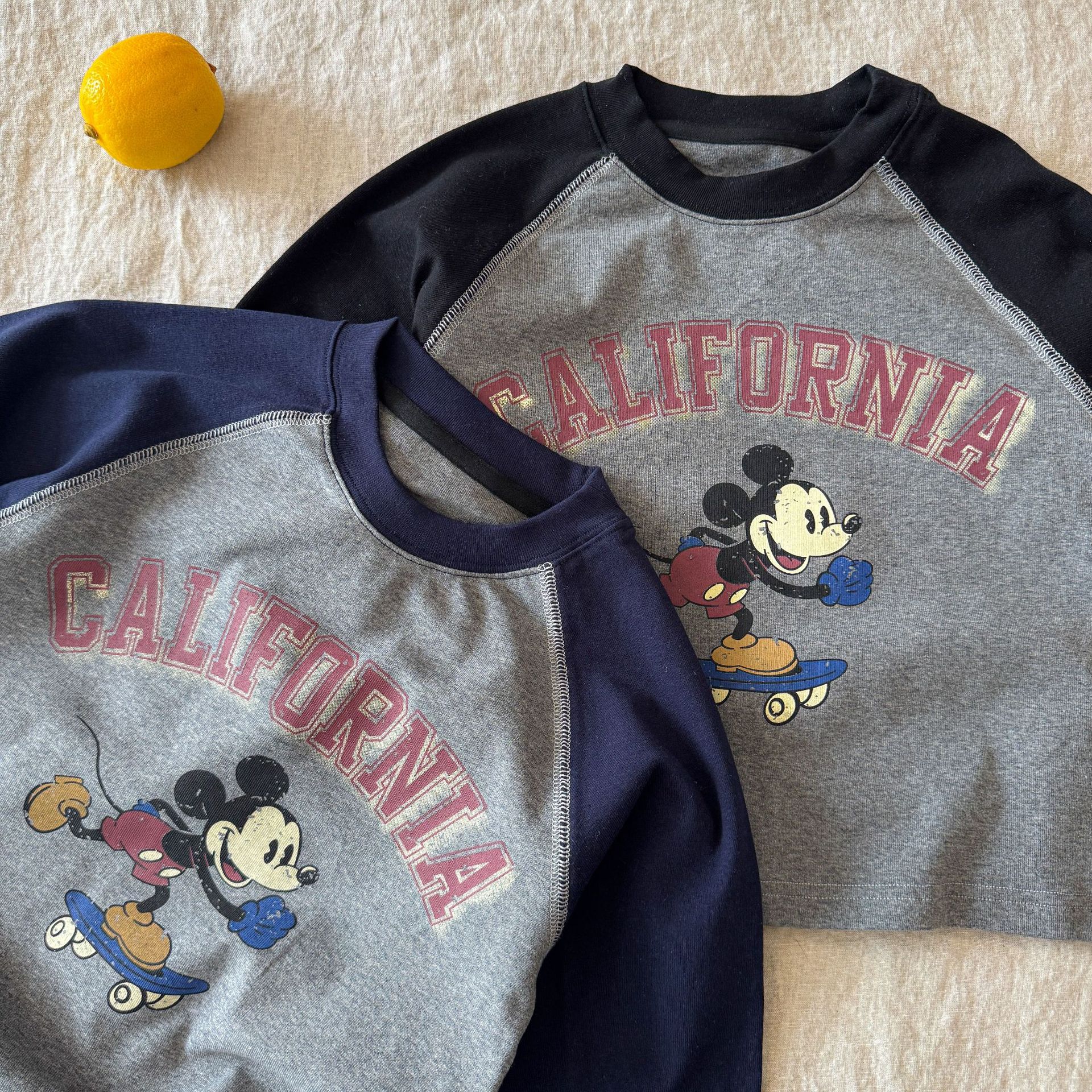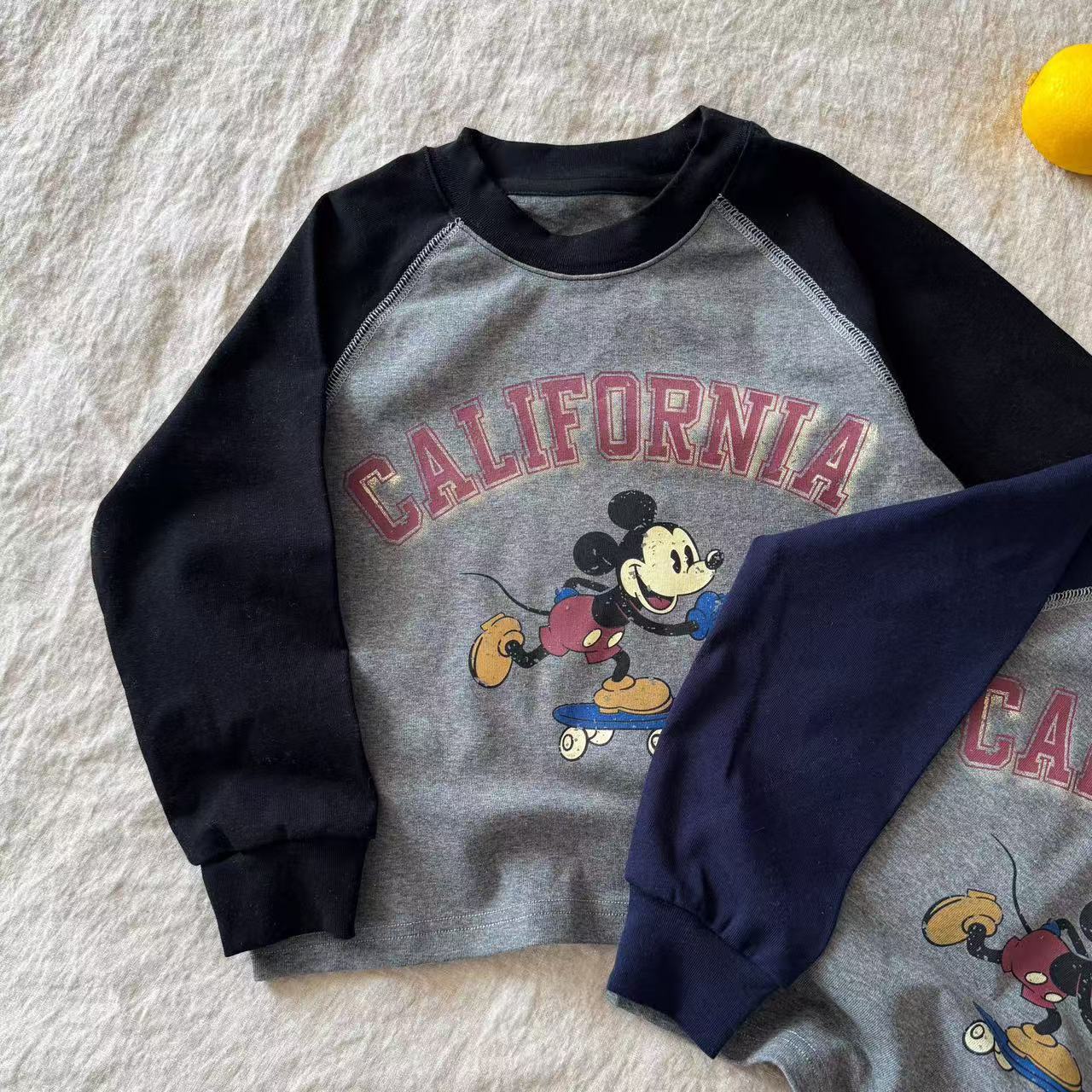 아동용 스웨터 2025 봄 아동 의류 새로운 스타일 소년과 소녀 라글란 슬리브 탑스티치 대비 색상 만화 프린트 스웨터