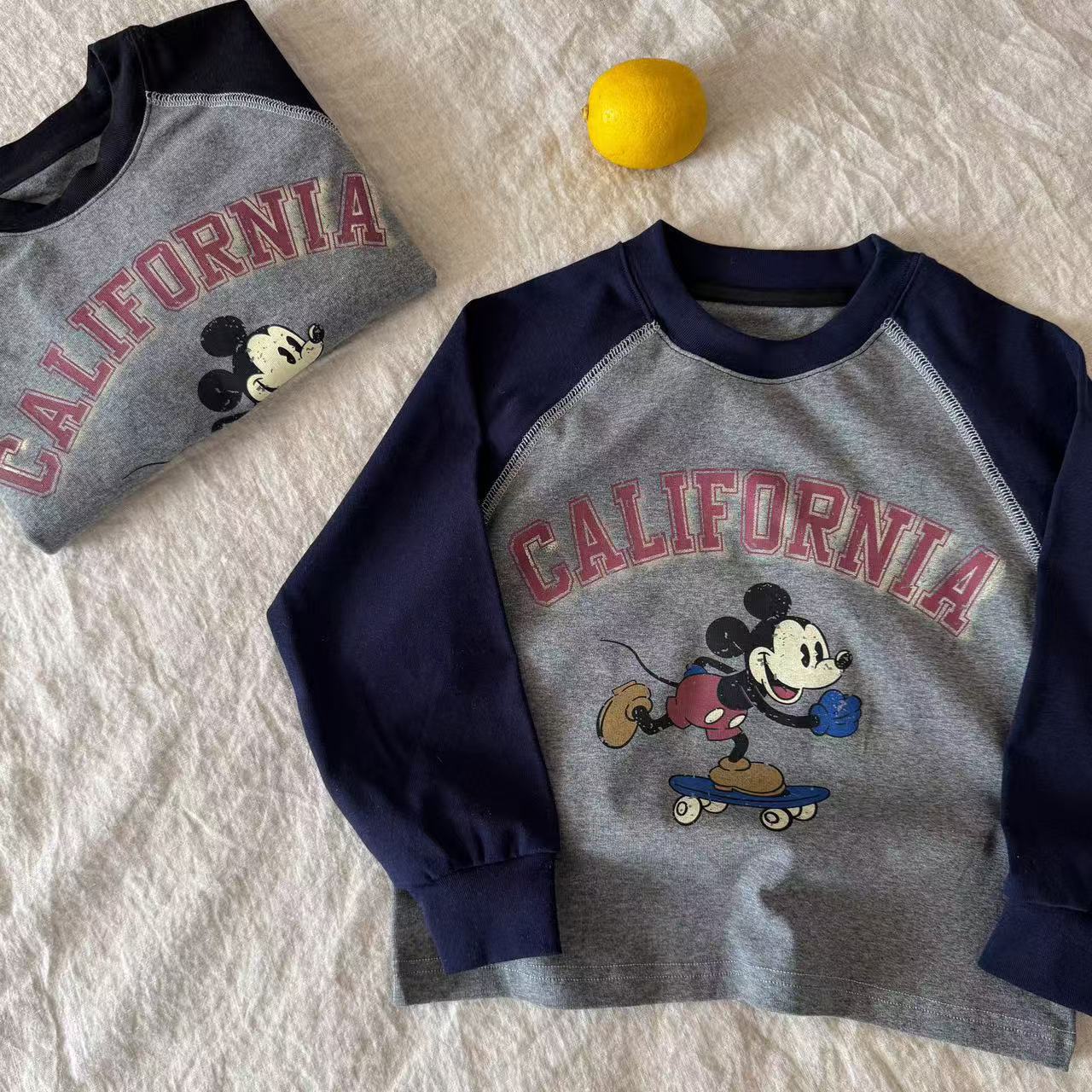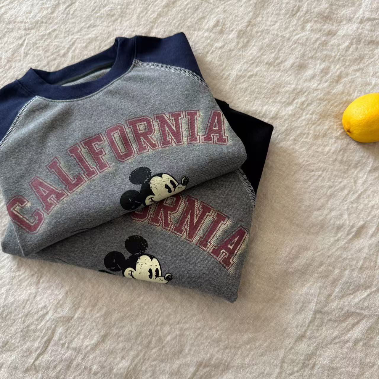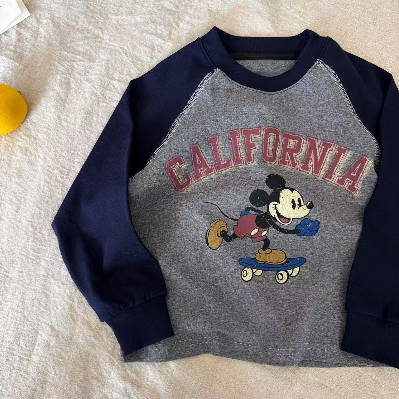 아동용 스웨터 2025 봄 아동 의류 새로운 스타일 소년과 소녀 라글란 슬리브 탑스티치 대비 색상 만화 프린트 스웨터스토어 가기