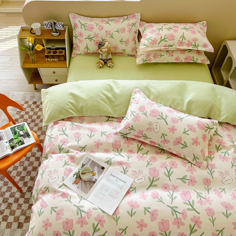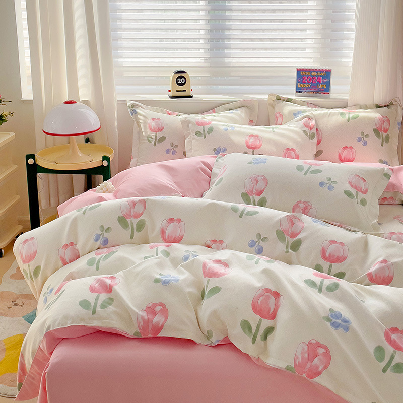 4 시즌 샌딩 4 피스 침대 시트 퀼트 커버 싱글 학생 기숙사 3 피스 침구