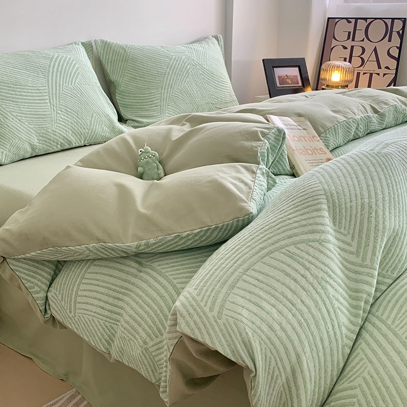 클래스 A 퓨어 코튼 샌딩 침대 4 피스 세트 라이트 럭셔리 침대 시트 가을과 겨울 자카드 퀼트 커버 침실 3 피스 침구