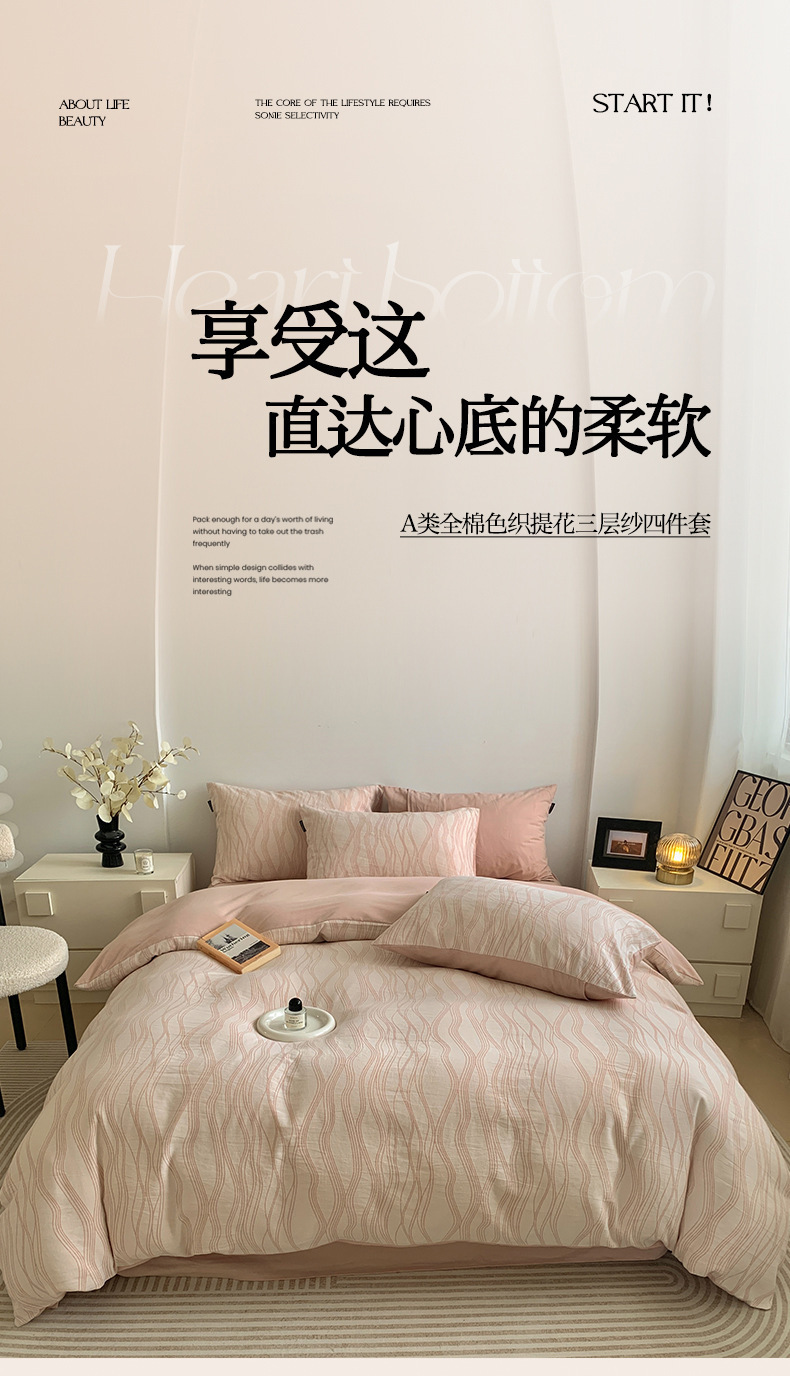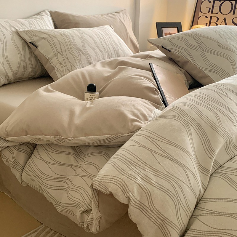 클래스 A 퓨어 코튼 샌딩 침대 4 피스 세트 라이트 럭셔리 침대 시트 가을과 겨울 자카드 퀼트 커버 침실 3 피스 침구스토어 가기