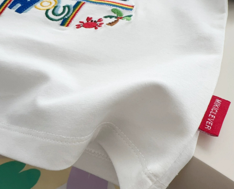 재고 일본식 25 년 여름 어린이 반팔 일본식 귀여운 곰 주공 자수 반팔 티셔츠 트렌디 7015