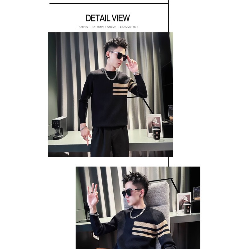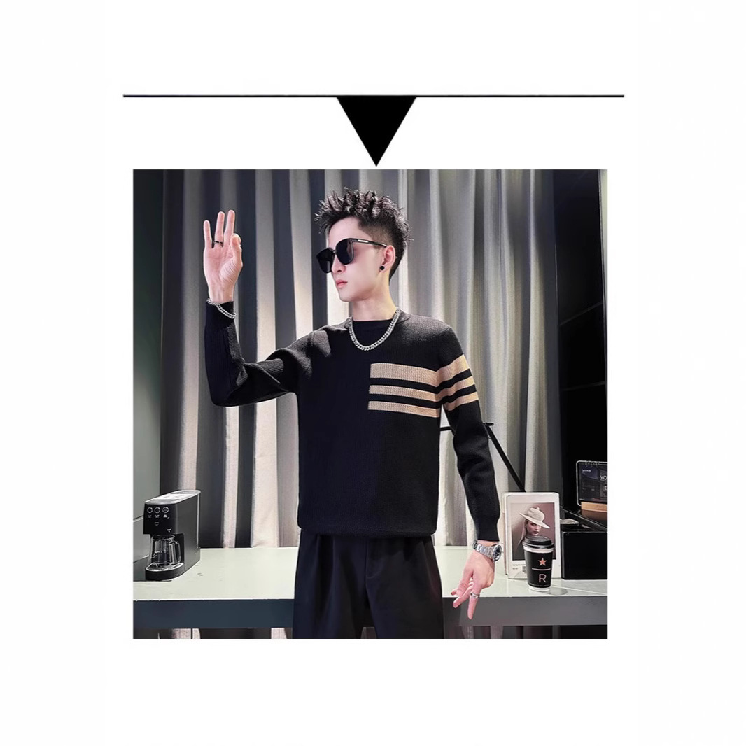 스트라이프 라운드 넥 스웨터 남자 가을 겨울 슬림 핏 트렌디 브랜드 2025 새로운 트렌디 풀오버 베이스 스웨터 남자 올 매치 스웨터스토어 가기
