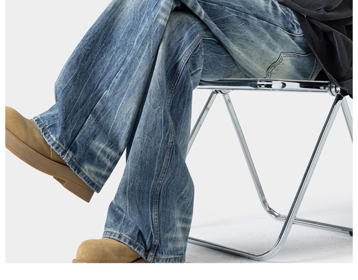 하이 스트리트 워시 라이트닝 패턴 청바지 남성 봄 아메리칸 스타일 구식 플러스 사이즈 와이드 레그 바지 디자인 센스 스트레이트 바지스토어 가기