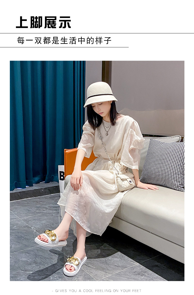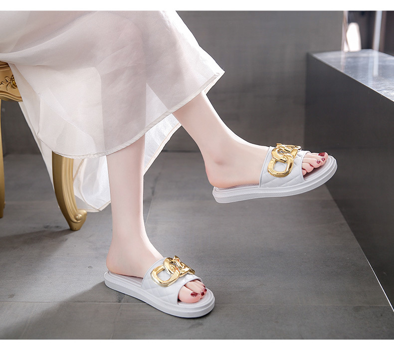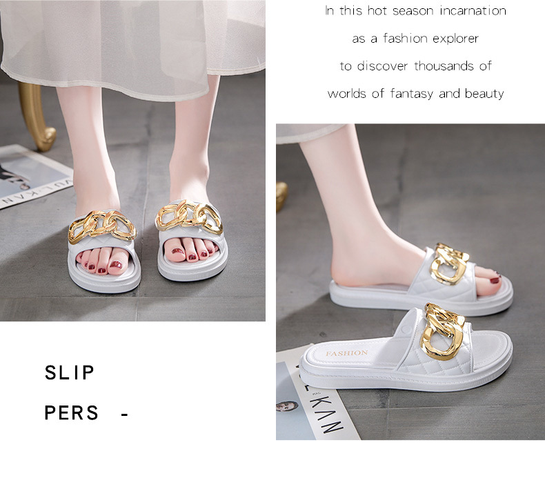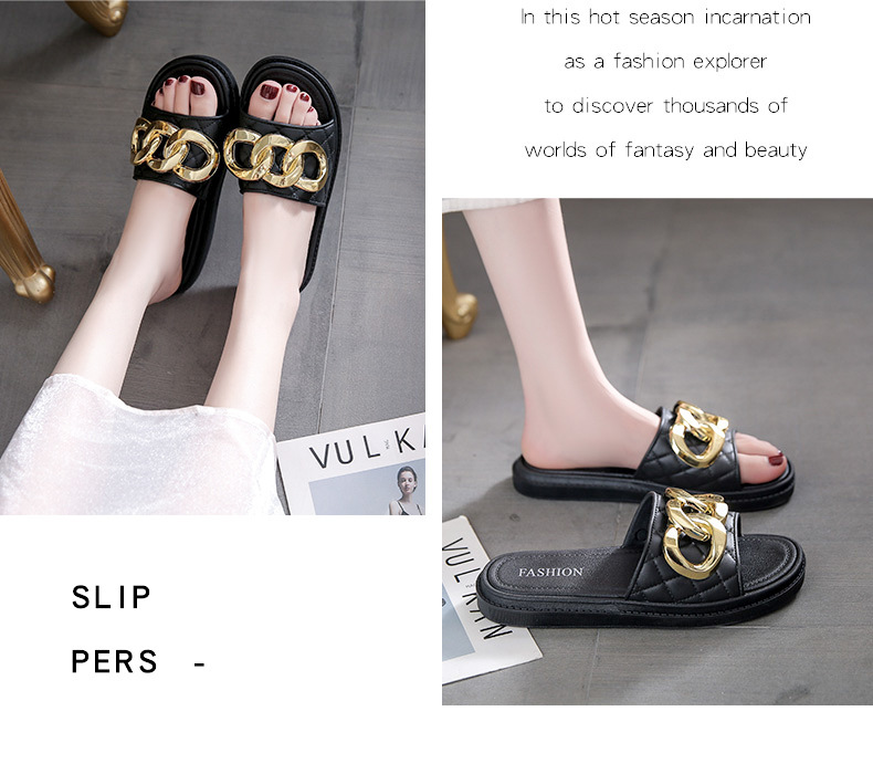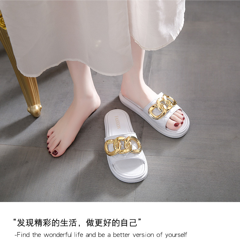 여름 새로운 체인 버클 디자인 여성 슬리퍼 착용 패션 조커 두꺼운 바닥-3.0CM 비치 여성용 슬리퍼스토어 가기