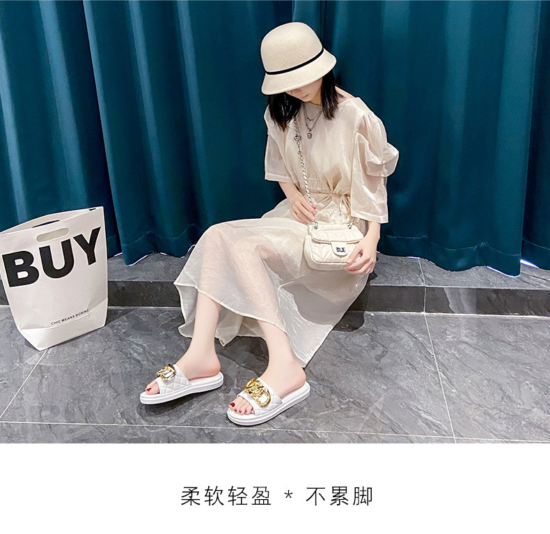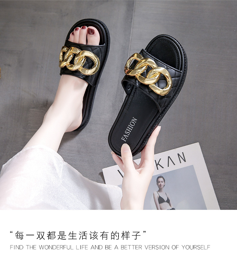 여름 새로운 체인 버클 디자인 여성 슬리퍼 착용 패션 조커 두꺼운 바닥-3.0CM 비치 여성용 슬리퍼
