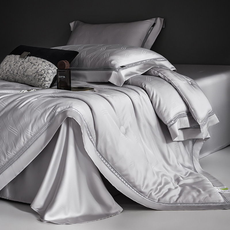 Lanjing Tencel 여름 이불 4 종 세트 클래스 양면 시원한 여름 이불 기계 세탁기 세탁기 세척 가능한 에어컨 이불 얇은 이불