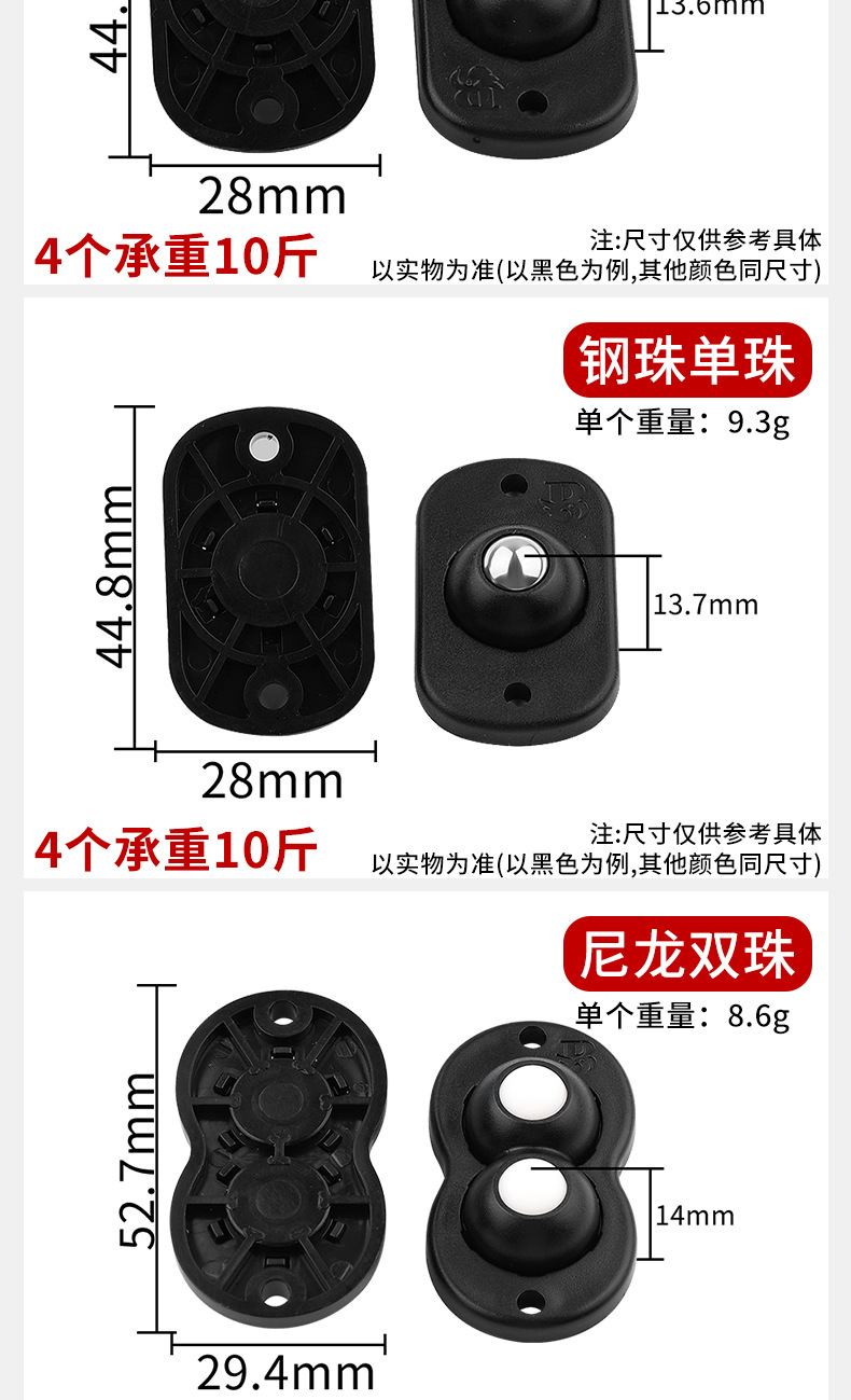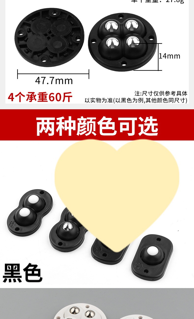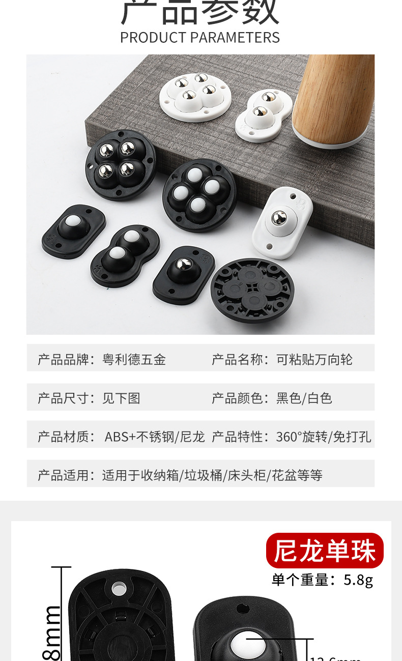 유니버설 휠 풀리 펀치 프리 나일론 휠베이스 볼형 접착 캐스터 회전 의자 롤러 소형 휠