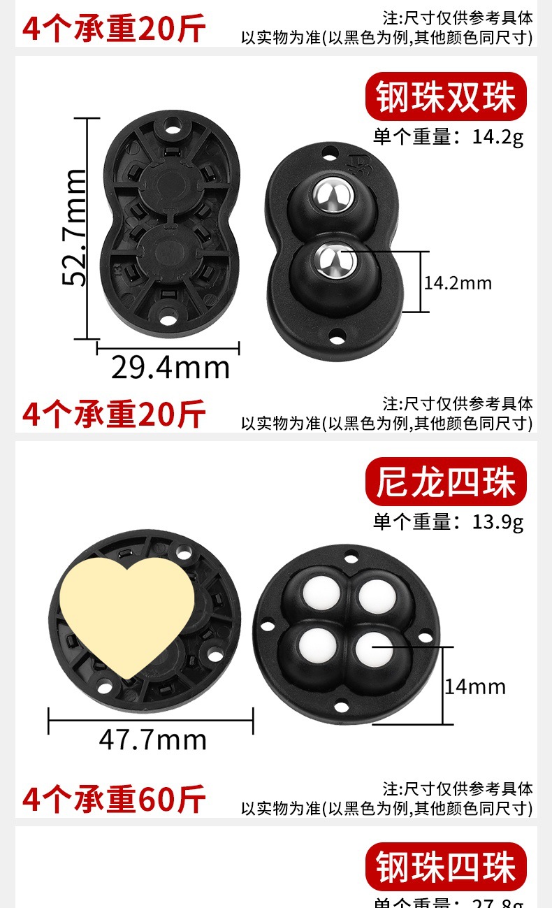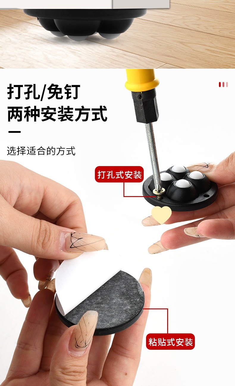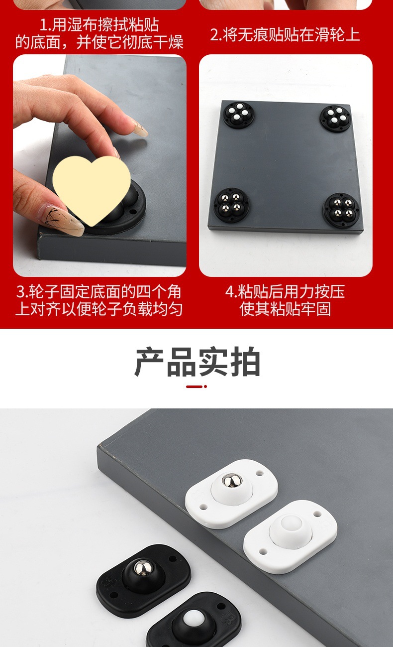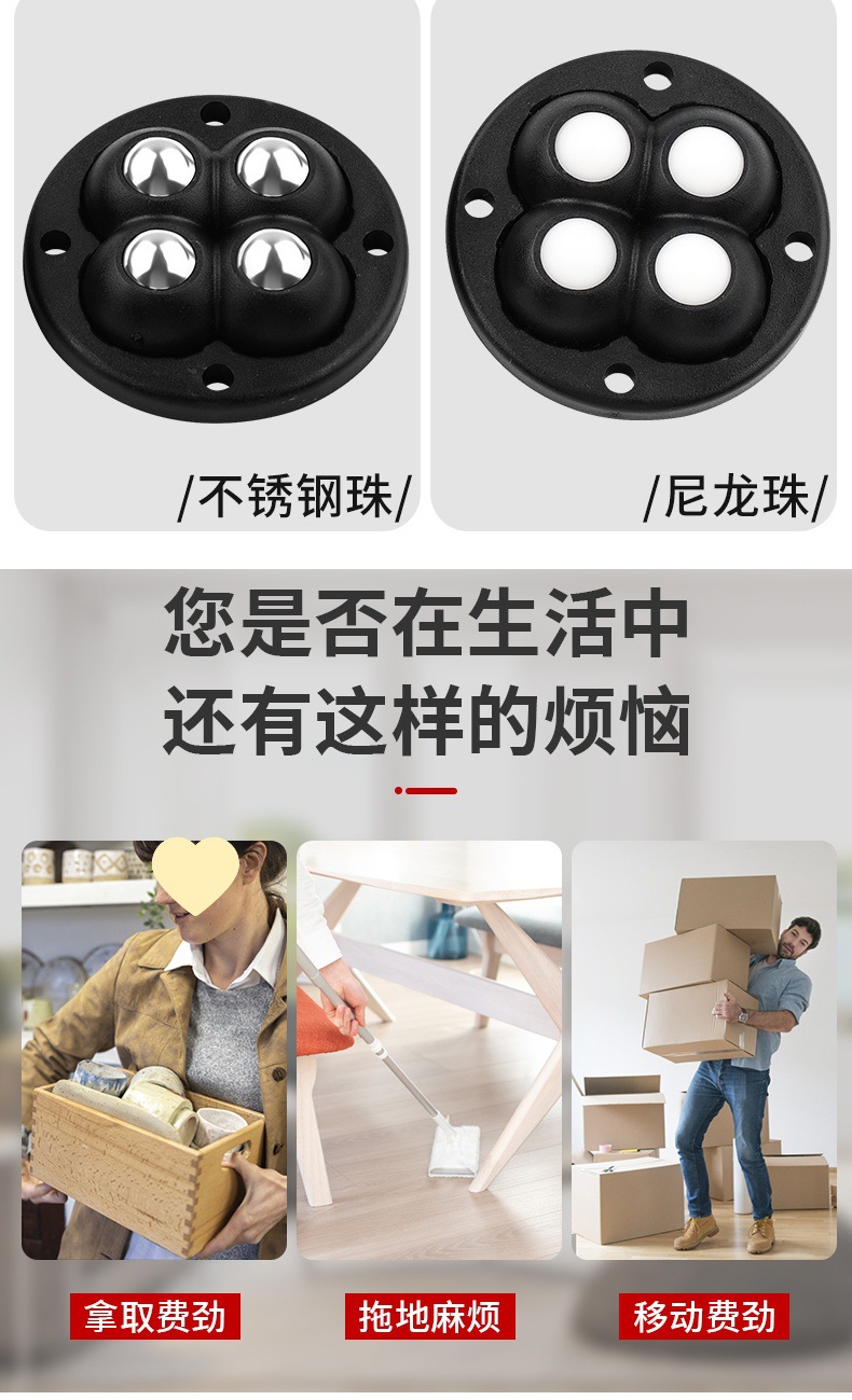 유니버설 휠 풀리 펀치 프리 나일론 휠베이스 볼형 접착 캐스터 회전 의자 롤러 소형 휠스토어 가기