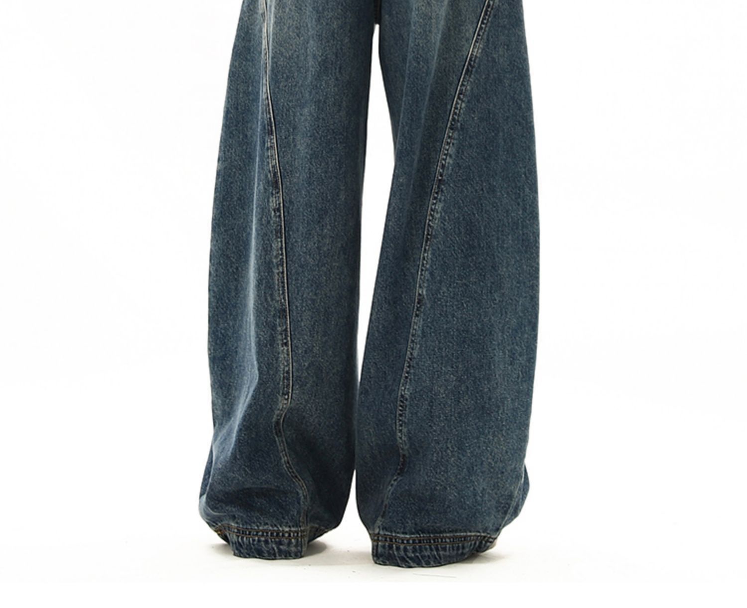 아메리칸 스타일 레트로 고양이 수염 Machete 청바지 남성 하이 스트리트 루즈 디자인 센스 클린 핏 스트레이트 레그 와이드 레그 롱 팬츠