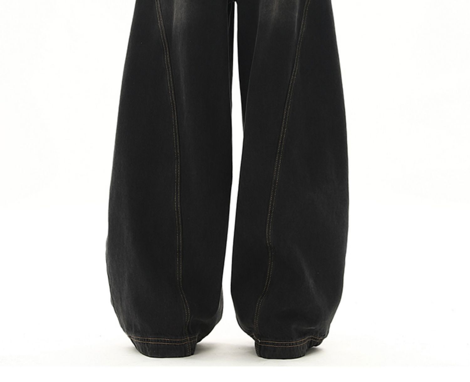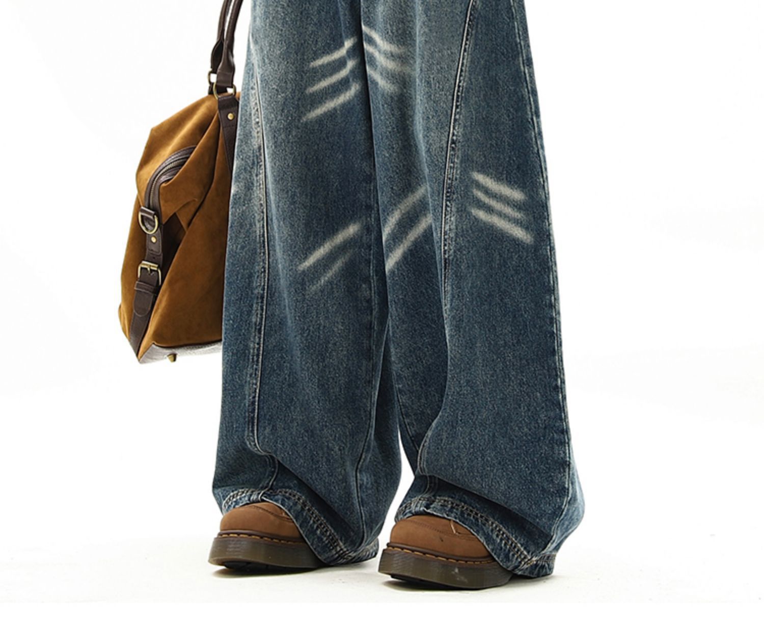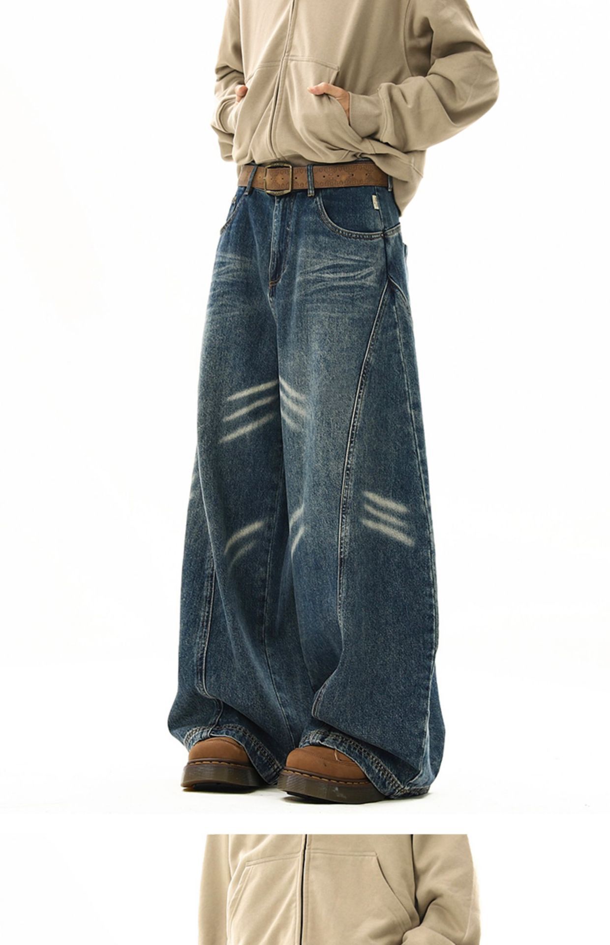 아메리칸 스타일 레트로 고양이 수염 Machete 청바지 남성 하이 스트리트 루즈 디자인 센스 클린 핏 스트레이트 레그 와이드 레그 롱 팬츠스토어 가기