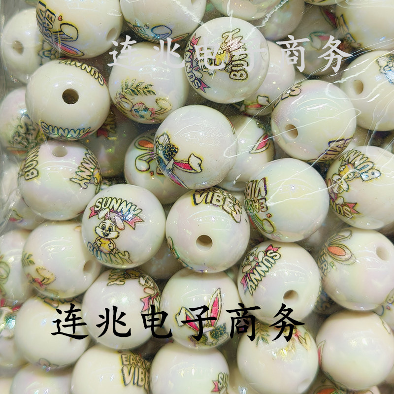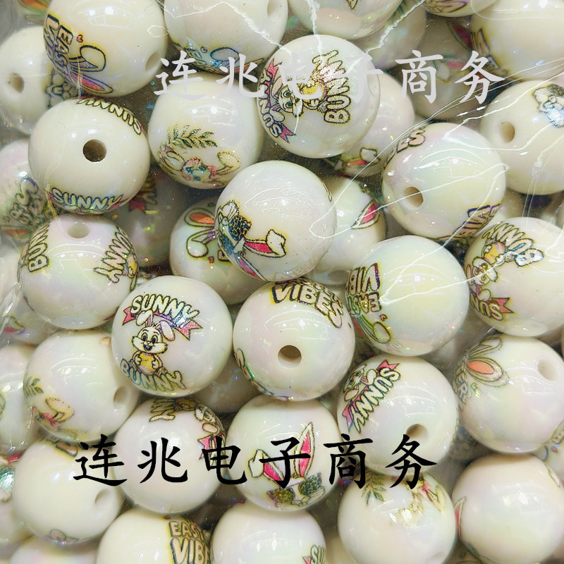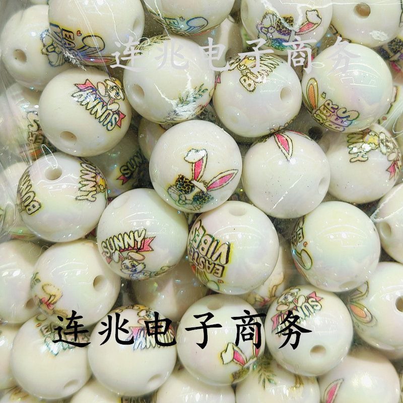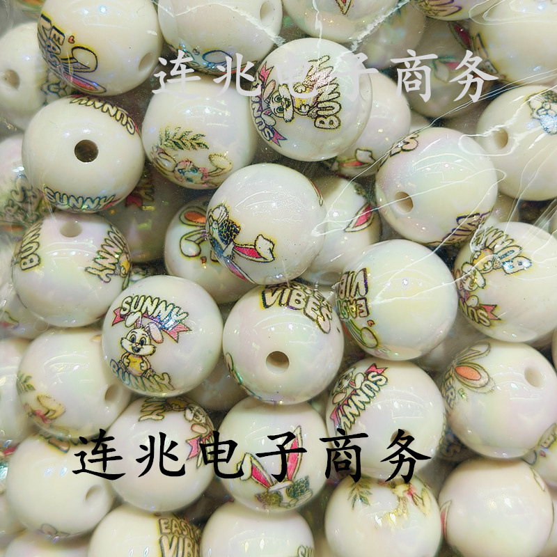 아크릴 리얼 컬러 인쇄 토끼 구슬 16 수직 구멍 DIY Tikok 라이브 전화 로프 키 체인 펜 액세서리