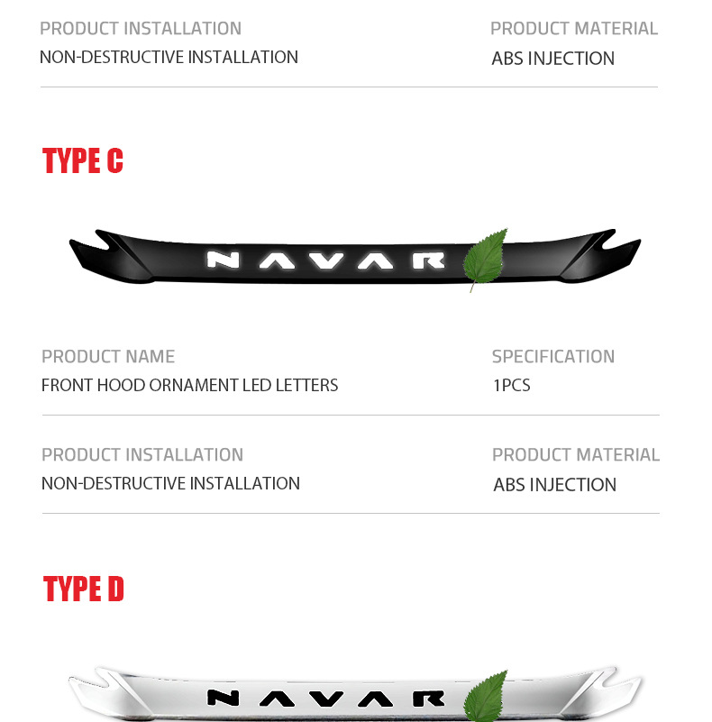 • 2015-2021-Navara 후드 트림 스트립 매트 흑백 문자-1pcs