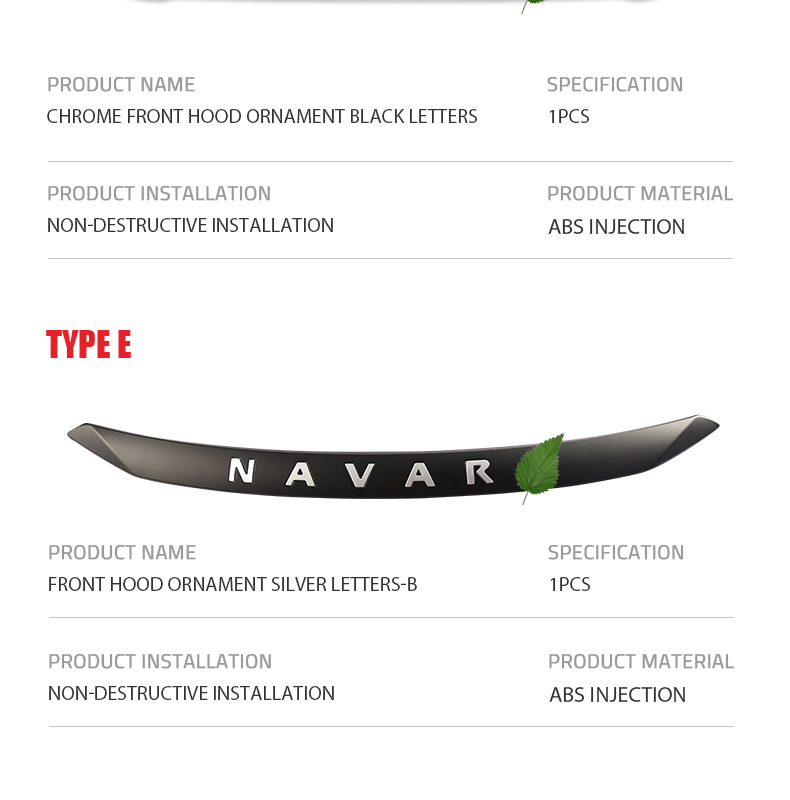• 2015-2021-Navara 후드 트림 스트립 전기 도금 검정색 문자-1pcs