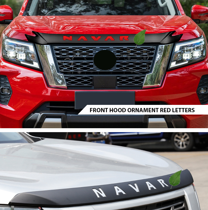 • 2015-2021-Navara 후드 트림 스트립 매트 블랙 레드 문자-1pcs