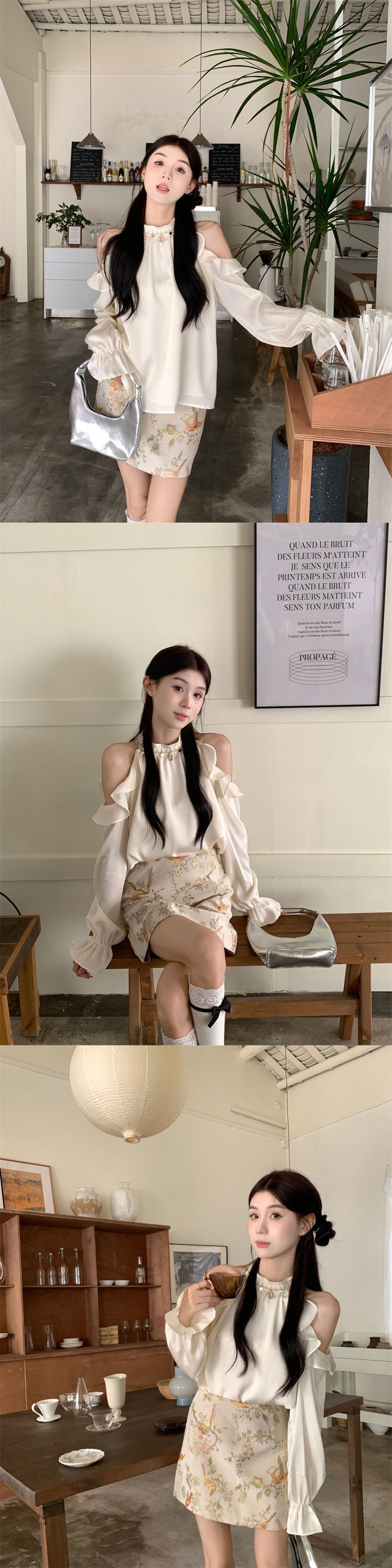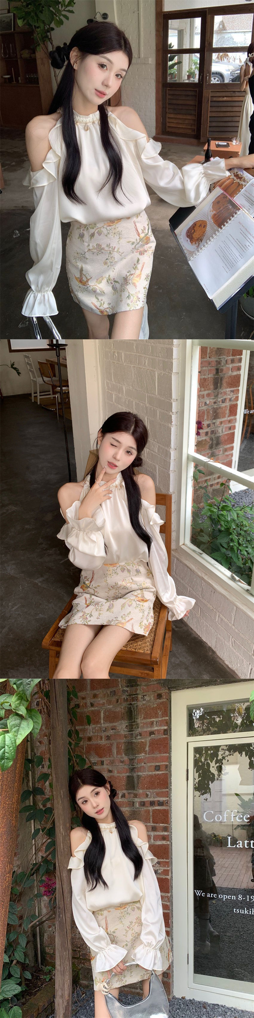 프랑스 스타일 세련된 순수 어깨 셔츠 여성 슬리밍 우아한 인쇄 치마 투피스 세트 봄 새로운 패션 세트스토어 가기