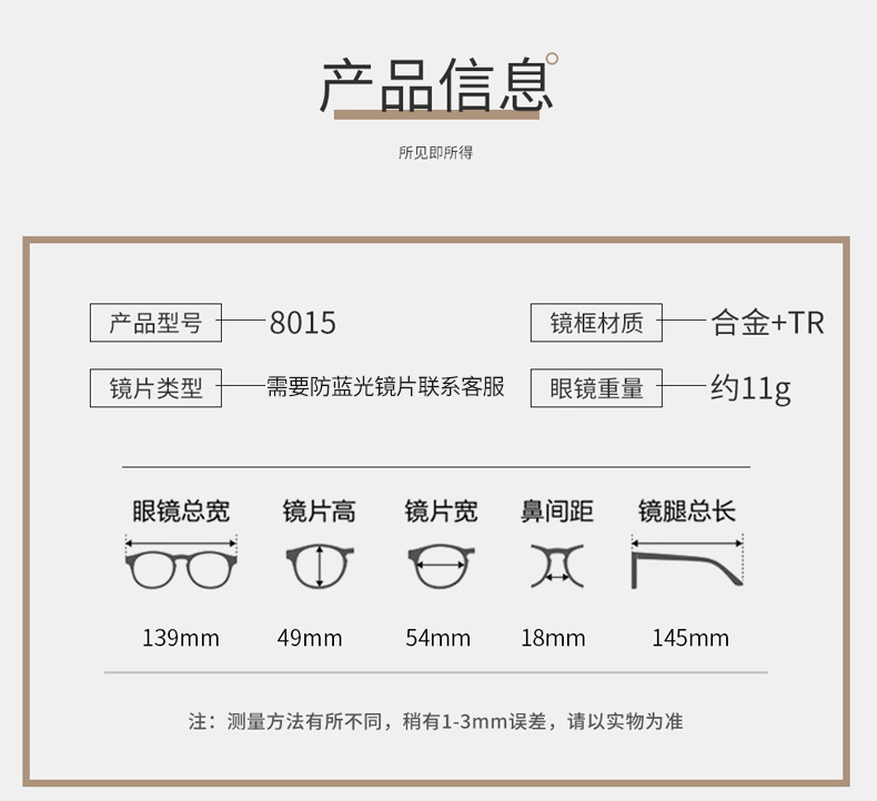 T848 다각형 안경 프레임 여성 안티 블루 라이트 플랫 안경 8015 광학 안경 프레임 도매 남성
