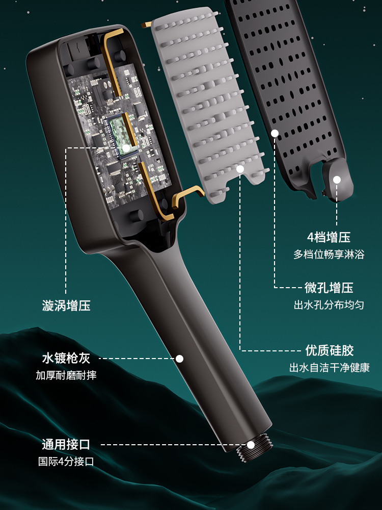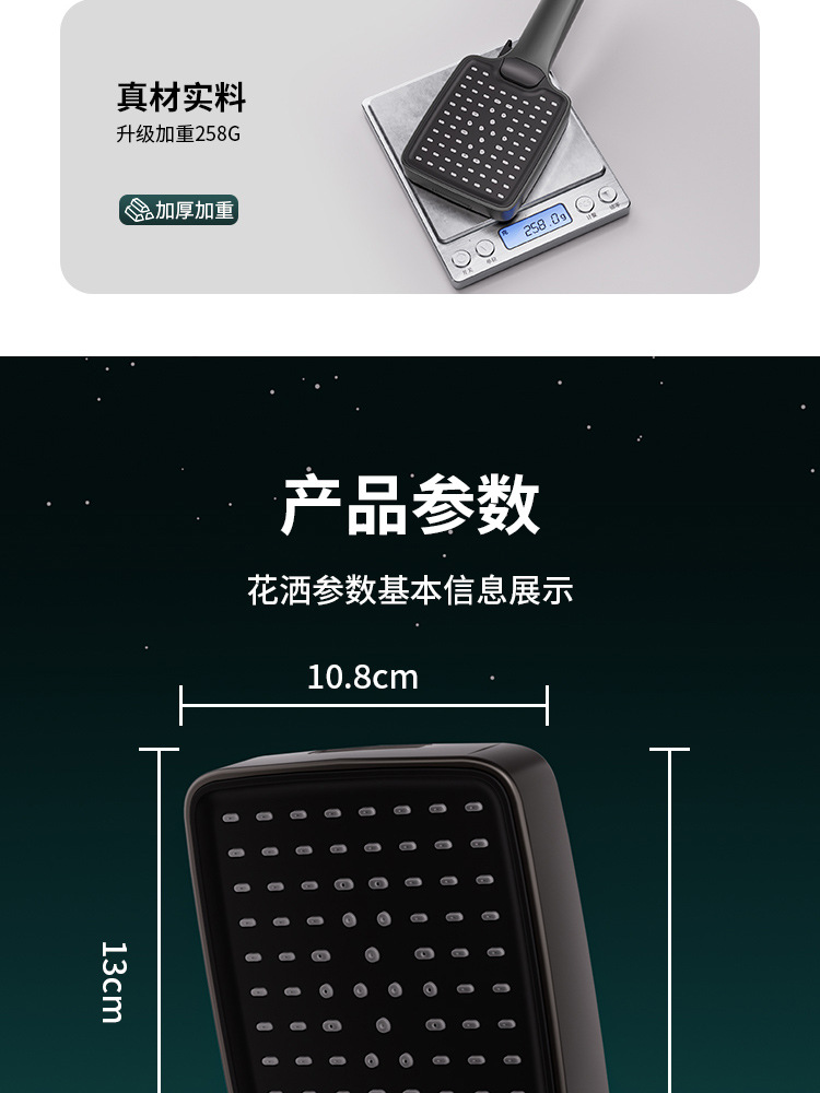 • [건애쉬] 대형 사각 패널 핸드샤워 + 샤워 브라켓