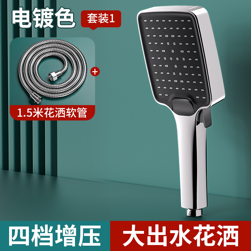 • [전기도금] 사각 대형 패널 핸드 샤워기 + 샤워 파이프 1.5m개