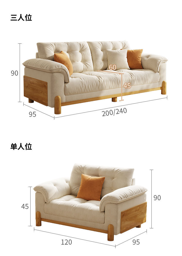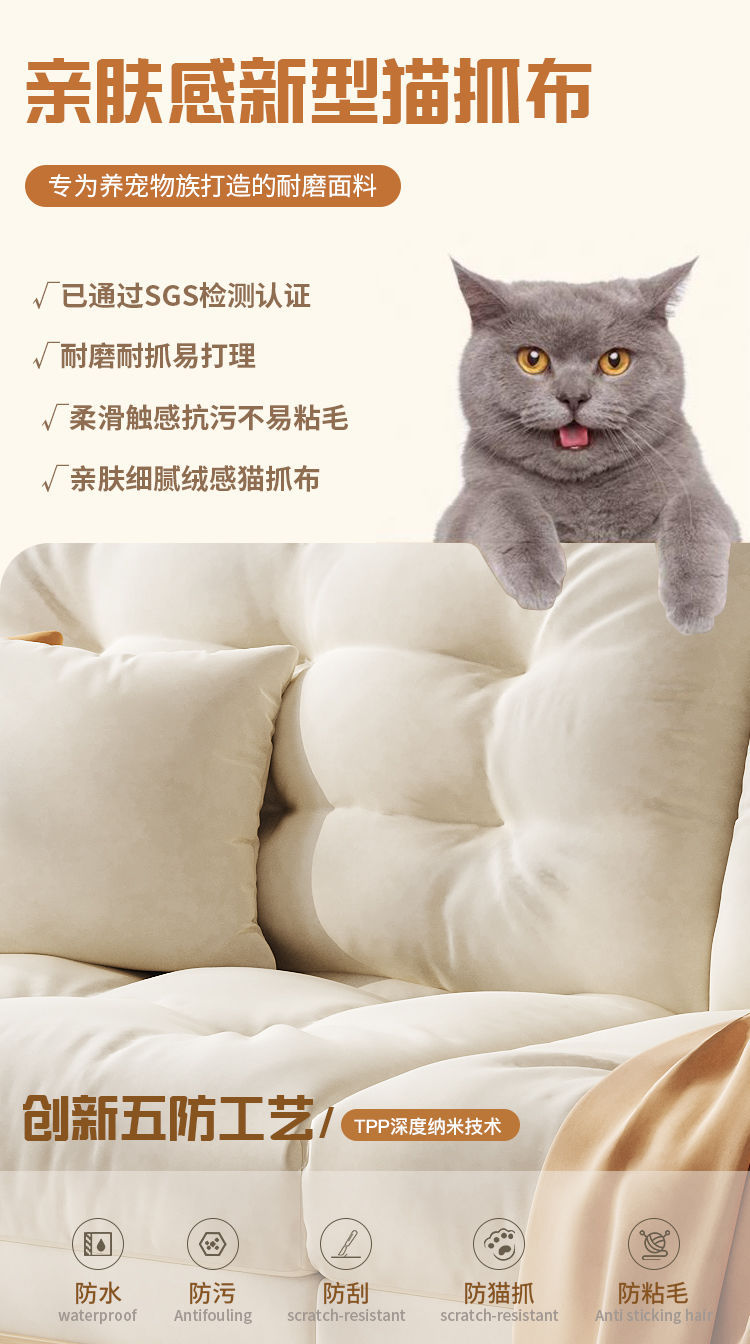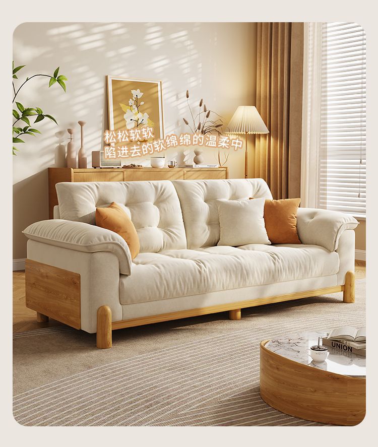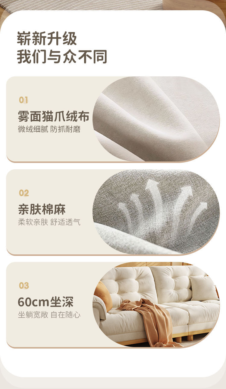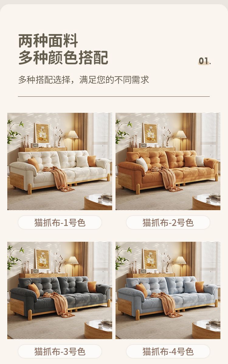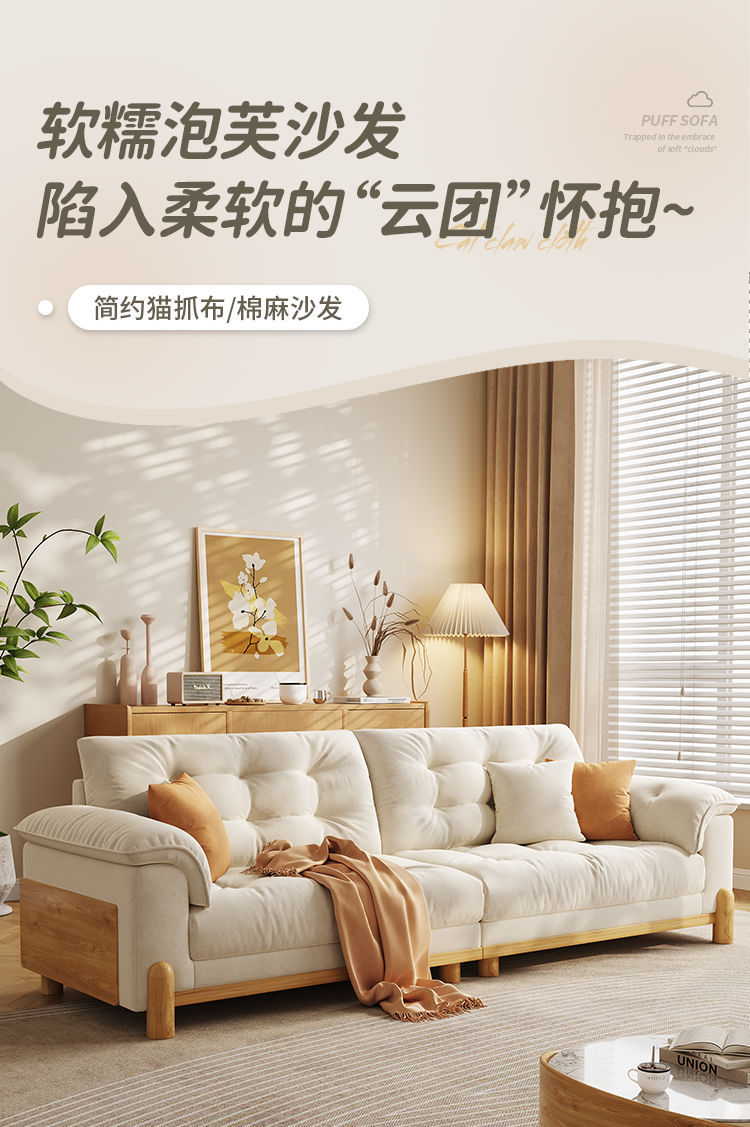 일본식 통나무 스타일 소파 거실 작은 아파트 스트레이트 로우 분리 가능 및 세탁 가능한 면화 및 리넨 고양이 클로 구름 소파스토어 가기