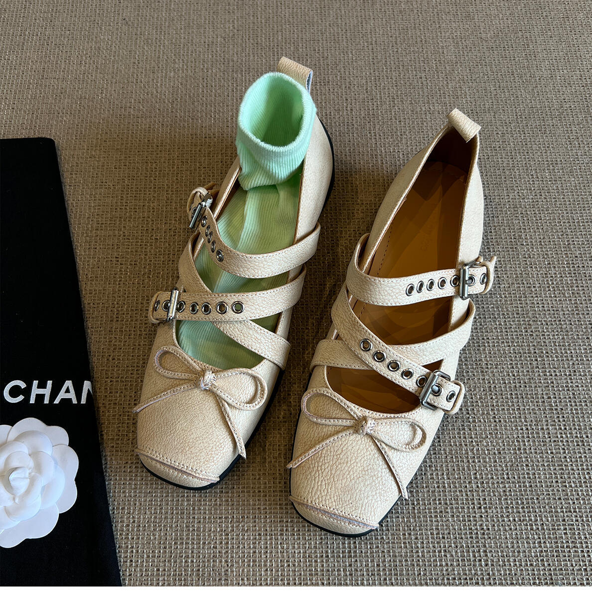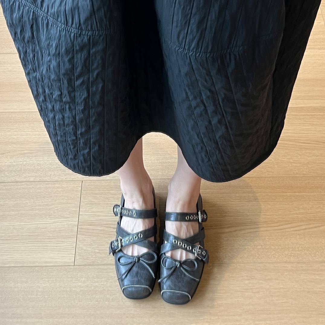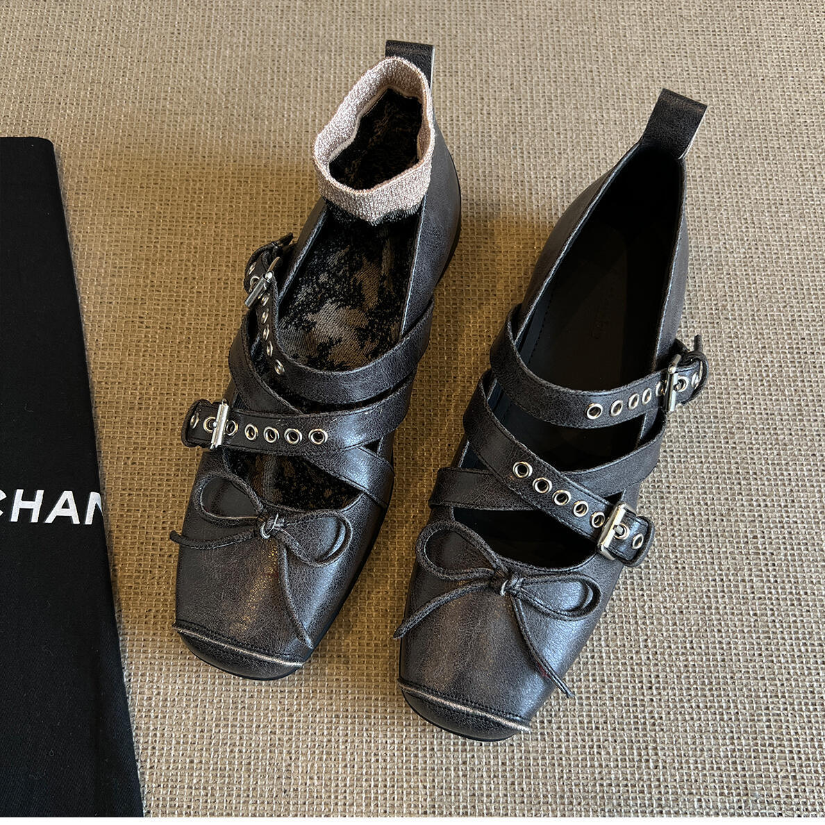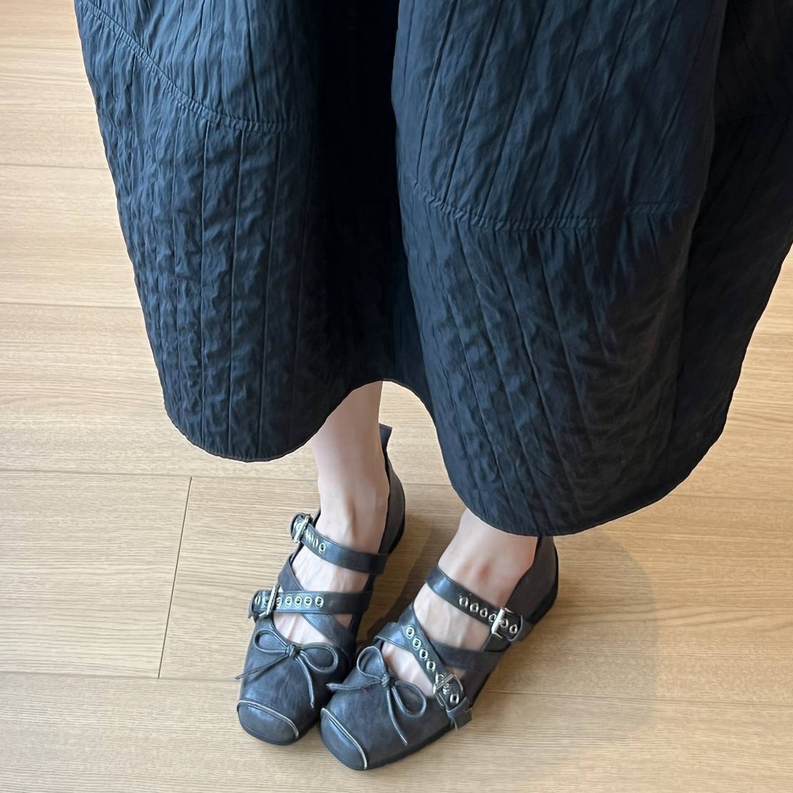 양가죽 버전 2025 새로운 돼지코 메리제인 슈즈, 레트로 스퀘어 토 발레 슈즈, 프렌치 스타일 펌프스 버클 여성화스토어 가기
