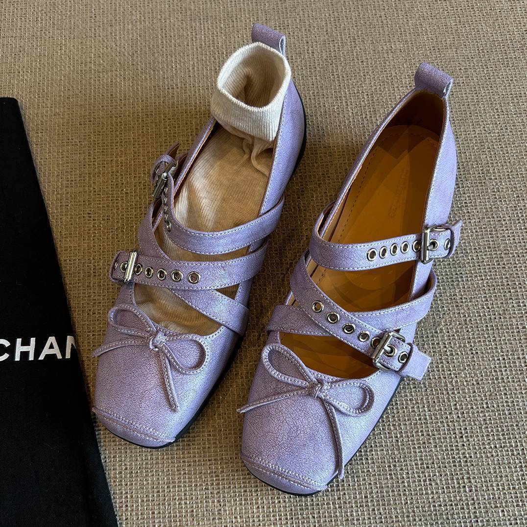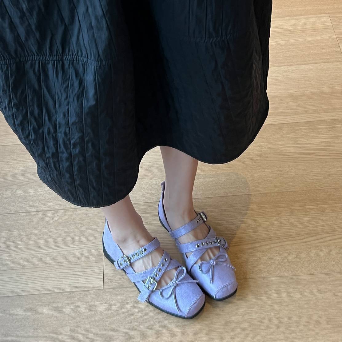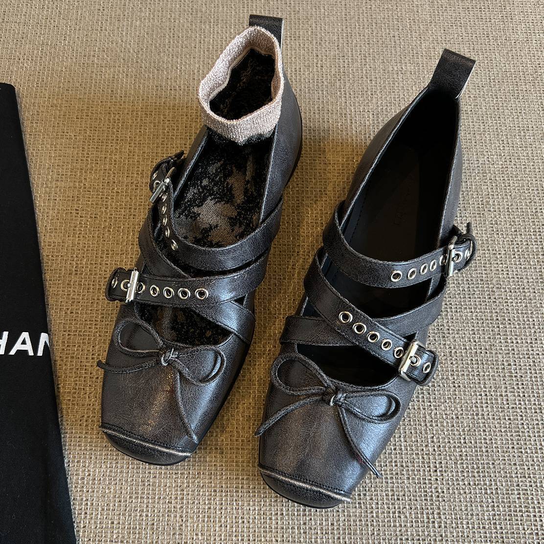 양가죽 버전 2025 새로운 돼지코 메리제인 슈즈, 레트로 스퀘어 토 발레 슈즈, 프렌치 스타일 펌프스 버클 여성화스토어 가기