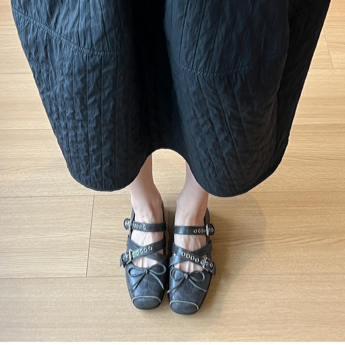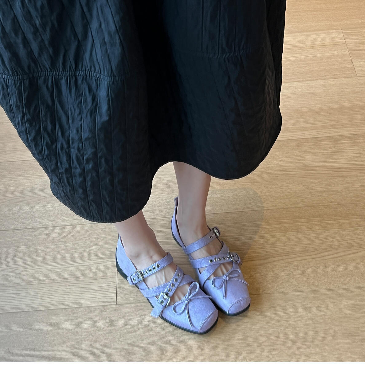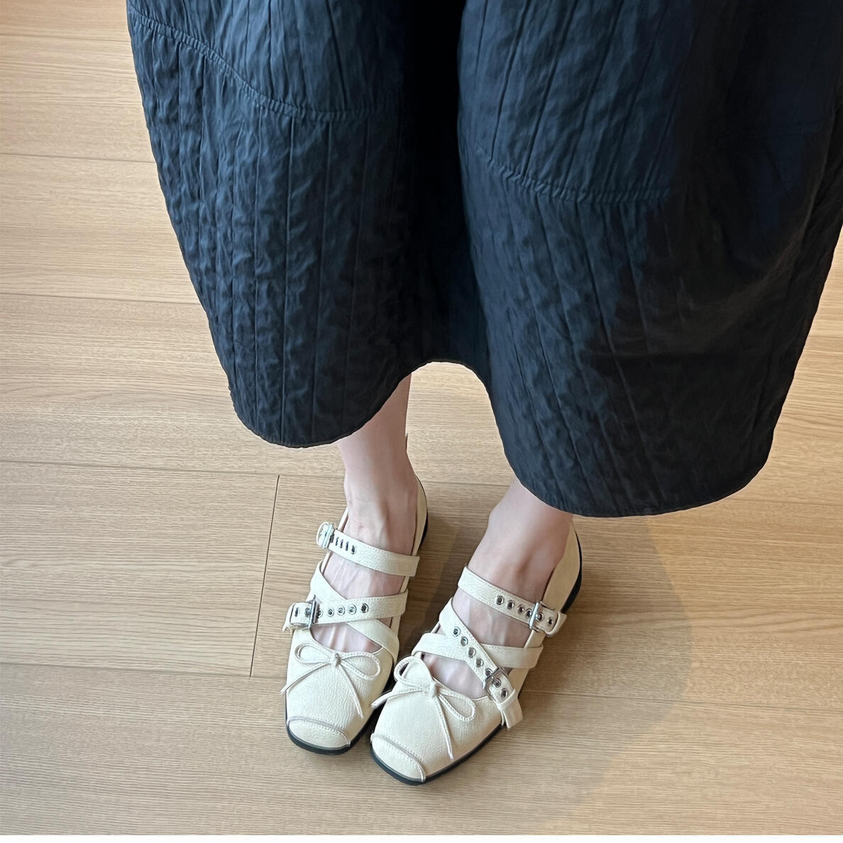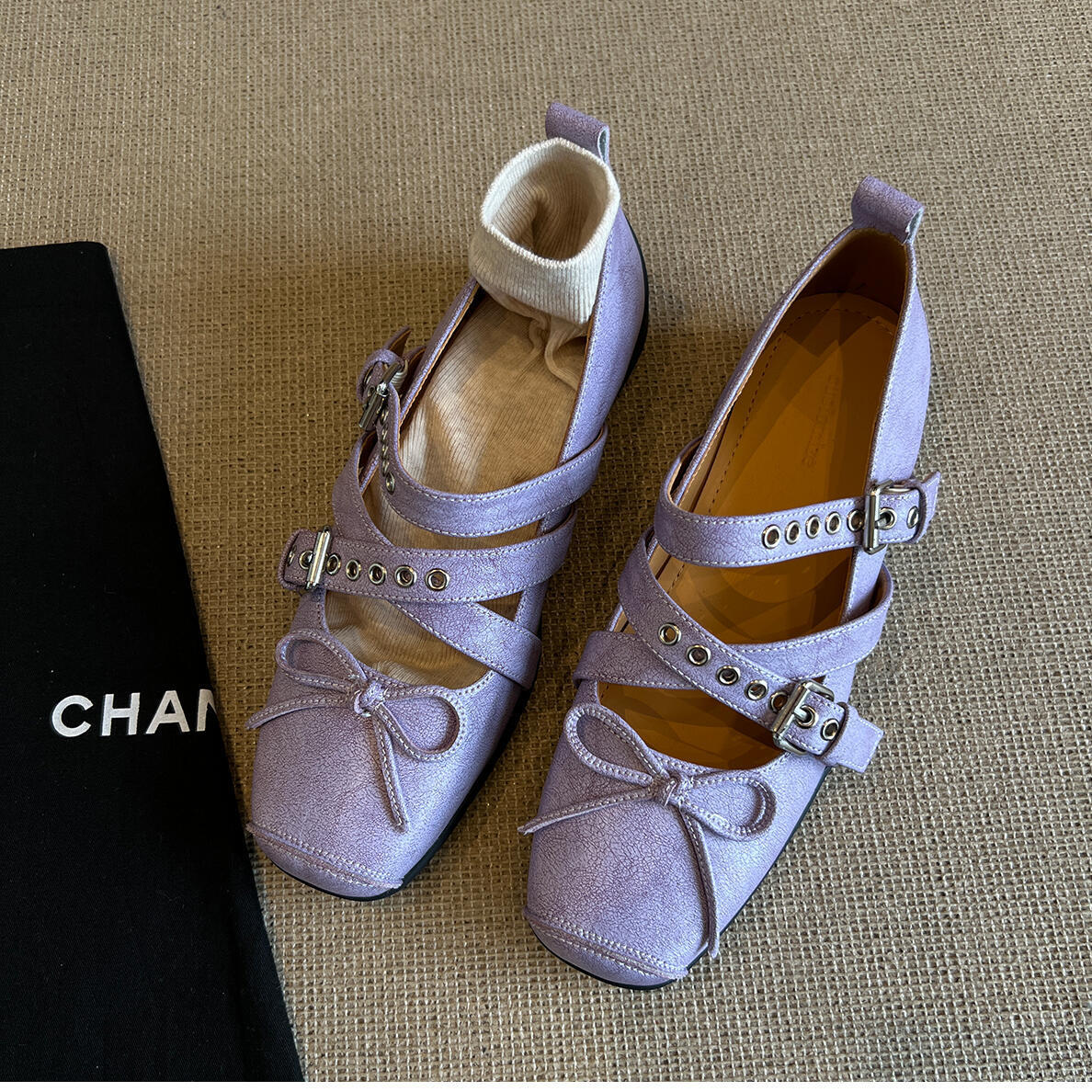 양가죽 버전 2025 새로운 돼지코 메리제인 슈즈, 레트로 스퀘어 토 발레 슈즈, 프렌치 스타일 펌프스 버클 여성화스토어 가기