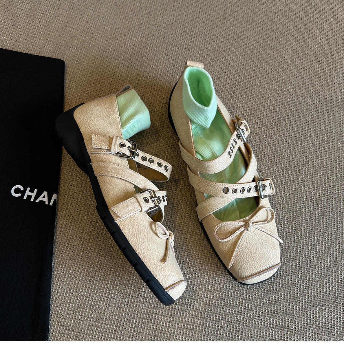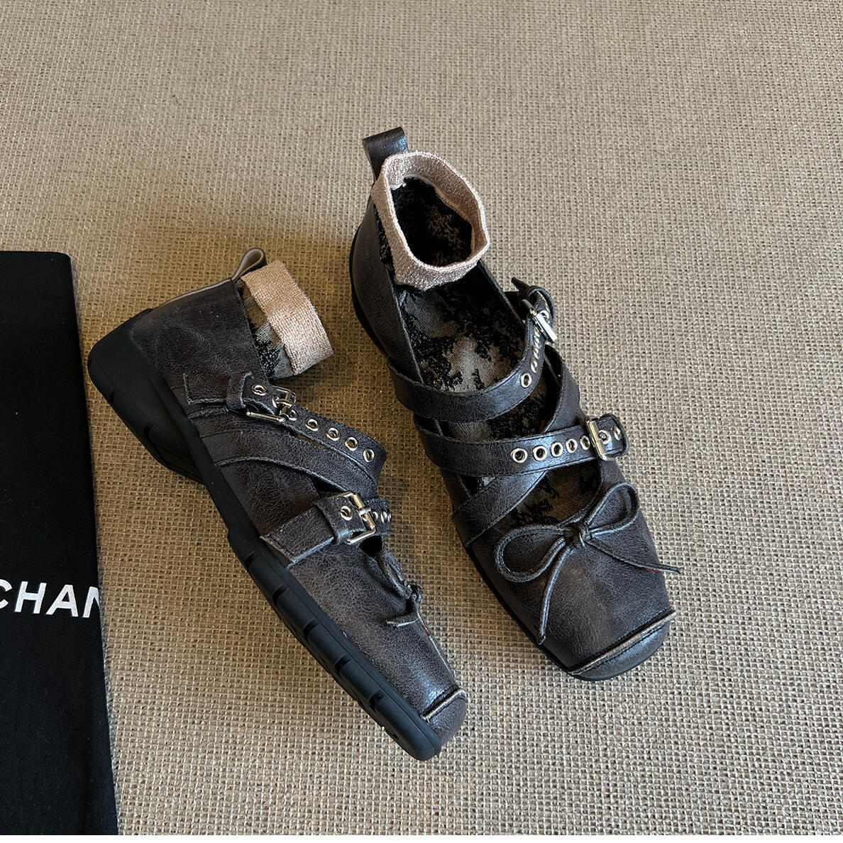 양가죽 버전 2025 새로운 돼지코 메리제인 슈즈, 레트로 스퀘어 토 발레 슈즈, 프렌치 스타일 펌프스 버클 여성화