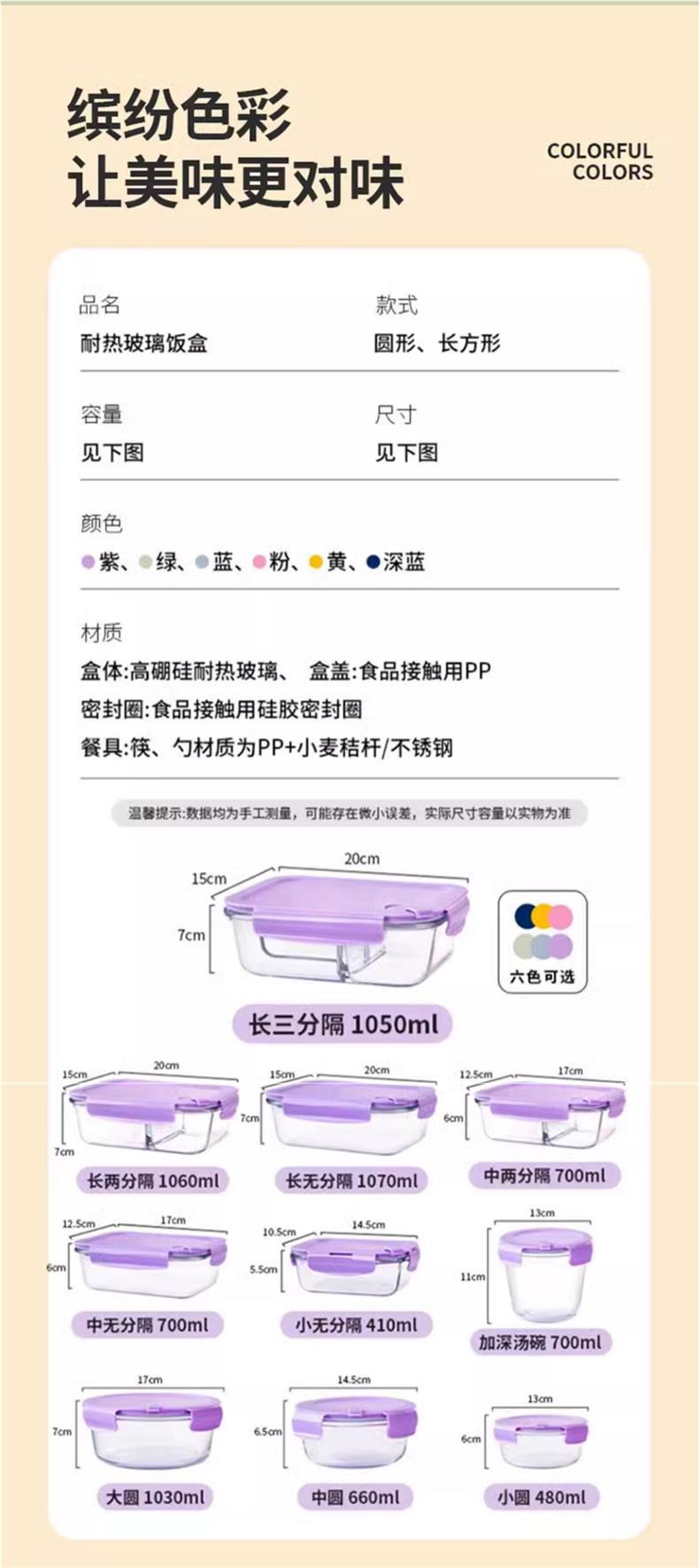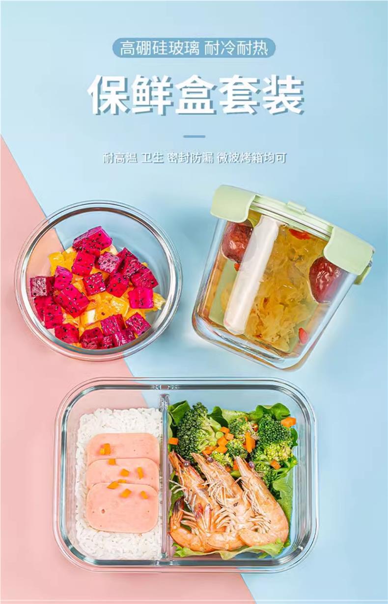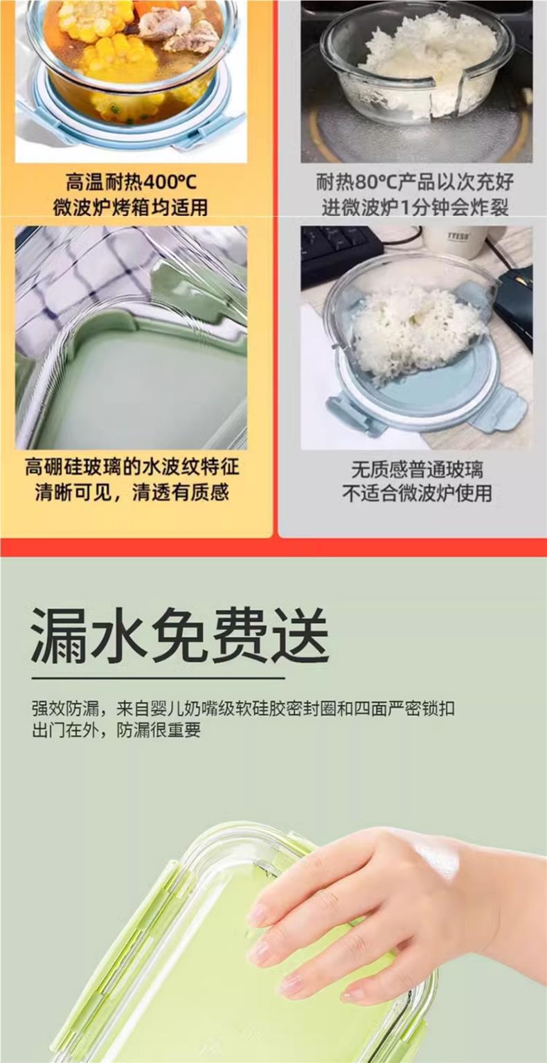 유리 도시락 신선한 유지 분리 된 도시락 그릇 전자 레인지 난방 특별 학생 및 직장인을위한 뚜껑 도시락 봉인스토어 가기