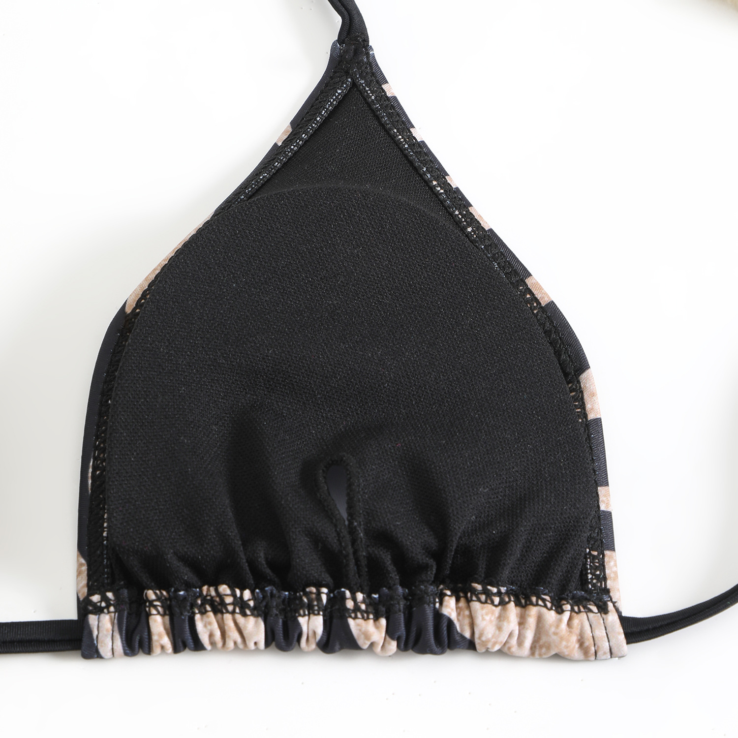2025 년 유럽과 미국의 대외 무역 여름 새로운 섹시한 레이스 업 레오파드 비키니 수영복 분할 세트 여성의 명암 색 순수한 욕망