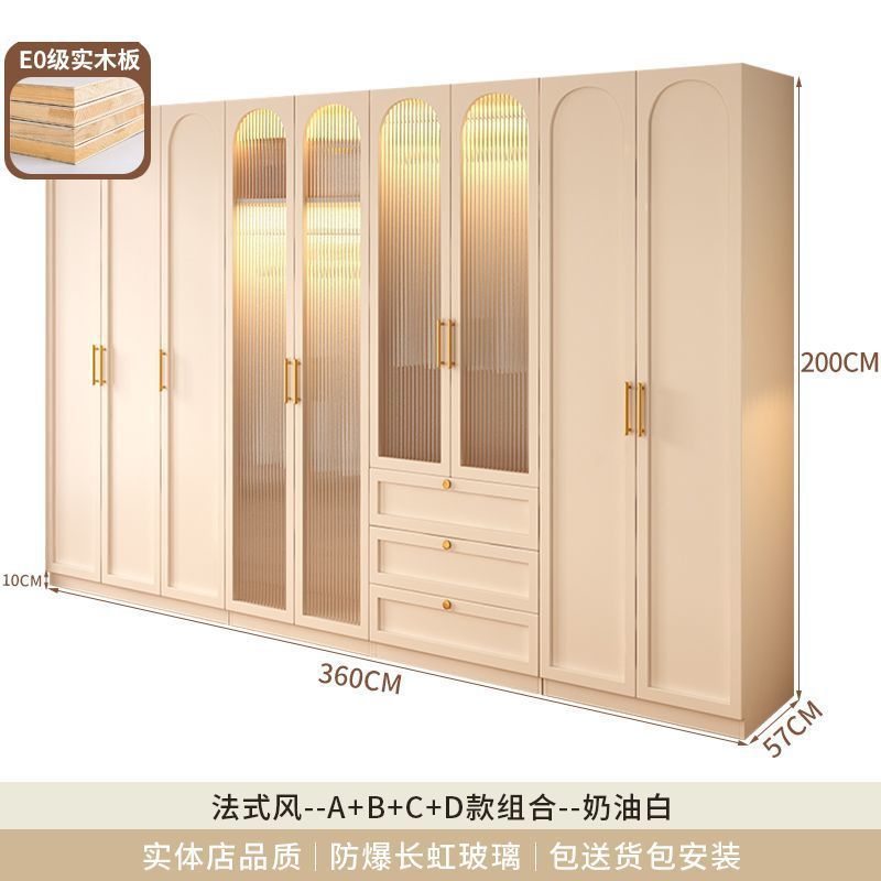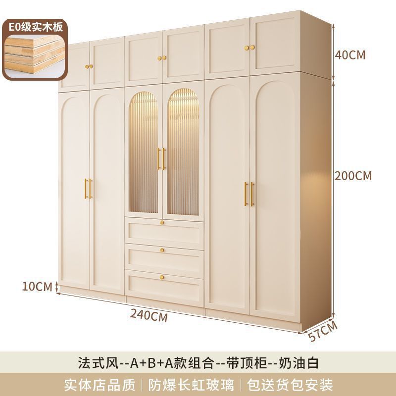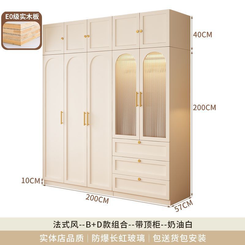 새로운 프랑스 크림 스타일 간단한 옷장 단단한 나무 옷장 홈 옷장 보관 캐비닛 침실 환경 친화적 인 포름 알데히드 프리