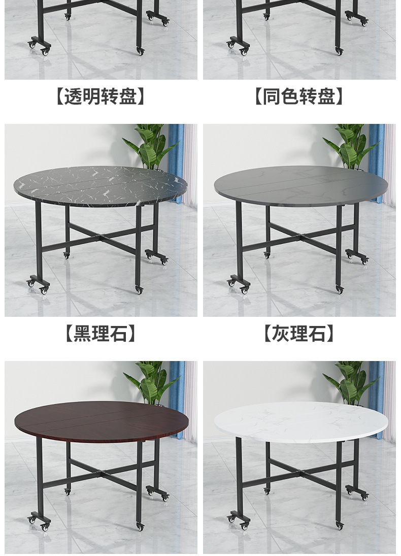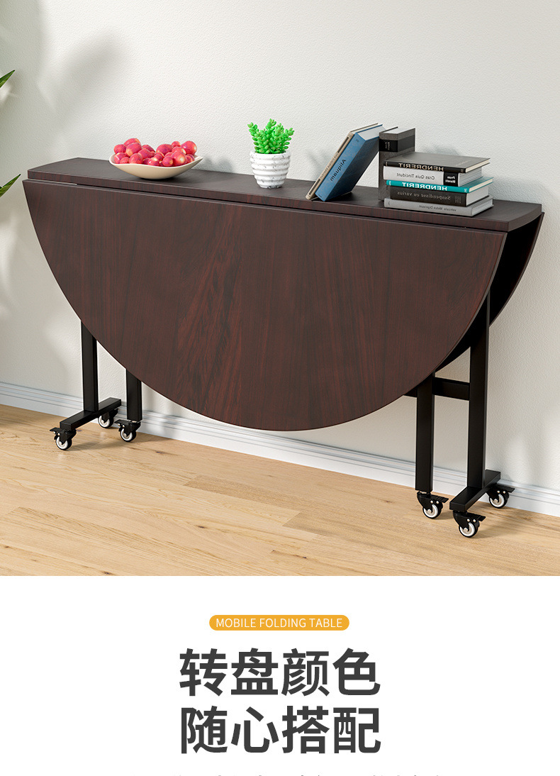 바퀴가 달린 접이식 식탁, 가정용 소형 아파트 이동식 대형 원형 테이블, 다기능 거실 식탁, 접이식 공장스토어 가기