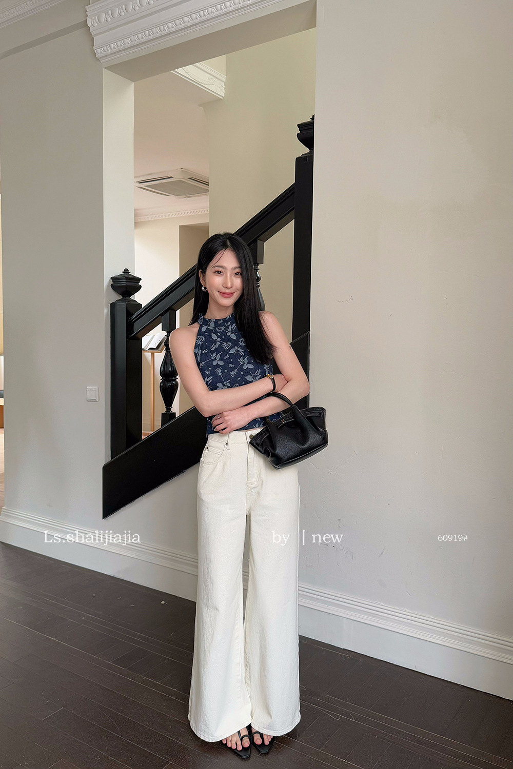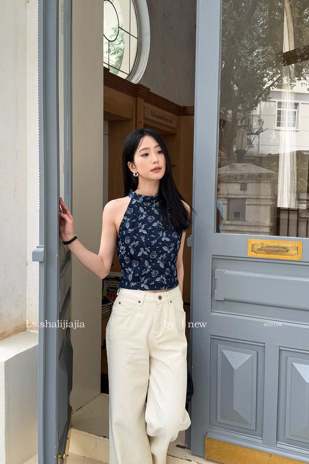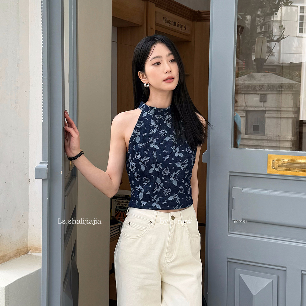 LS 프랑스 자카드 올 매치 홀터 조끼 데님 탑 2025 봄 여름 신작 셔츠 60919 #스토어 가기