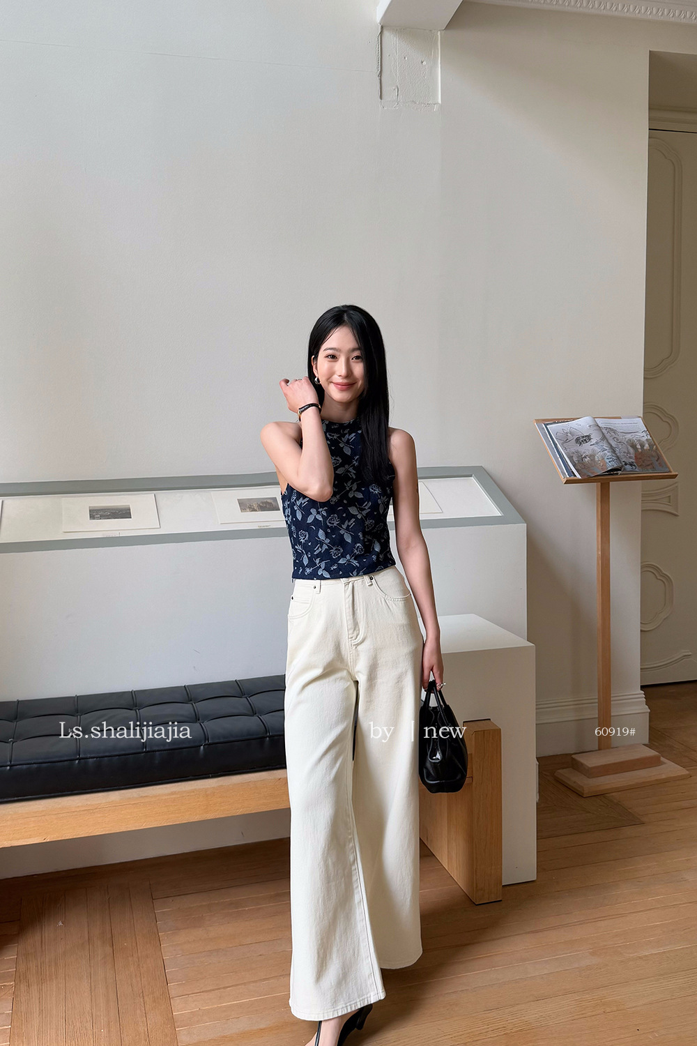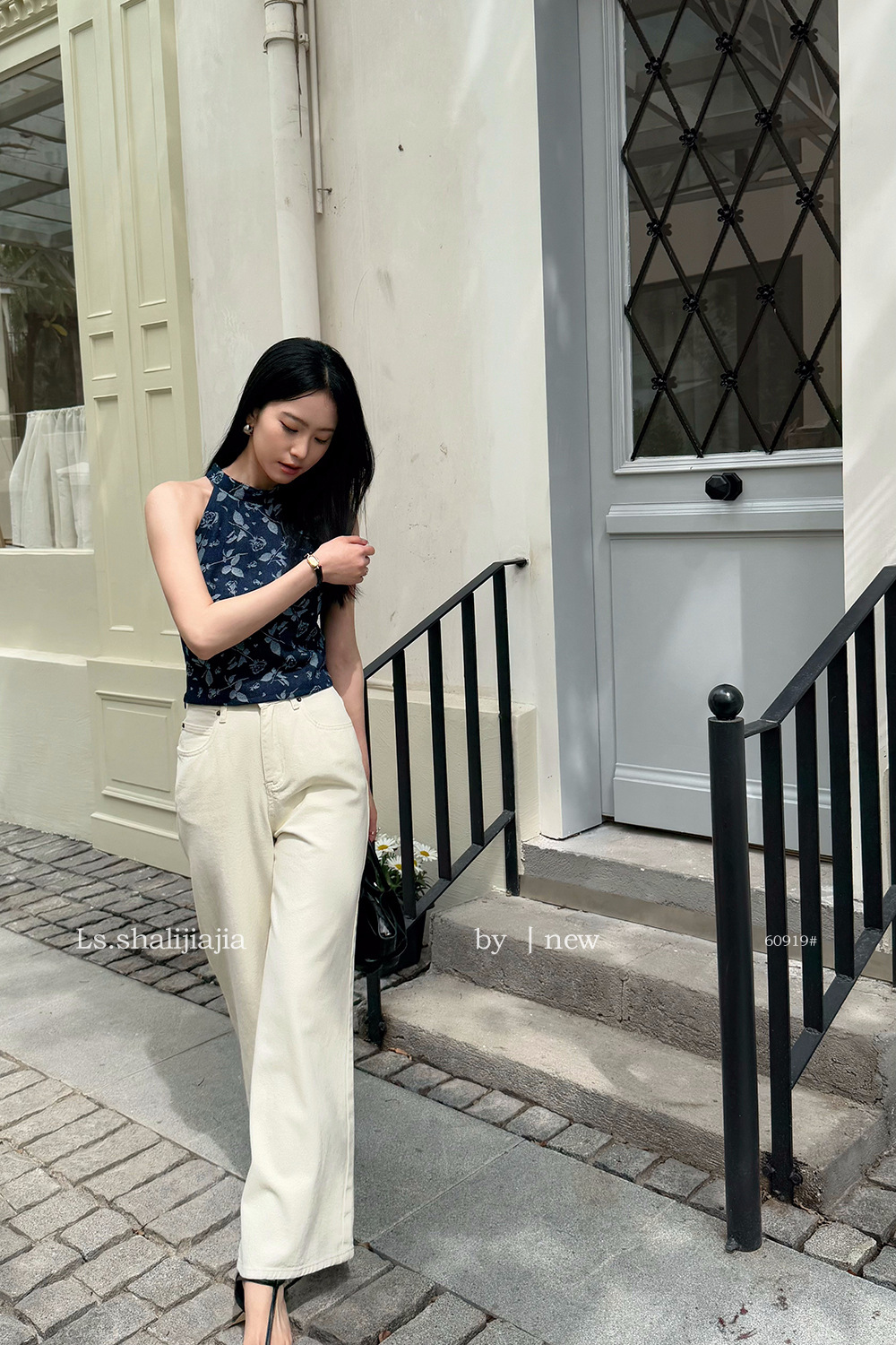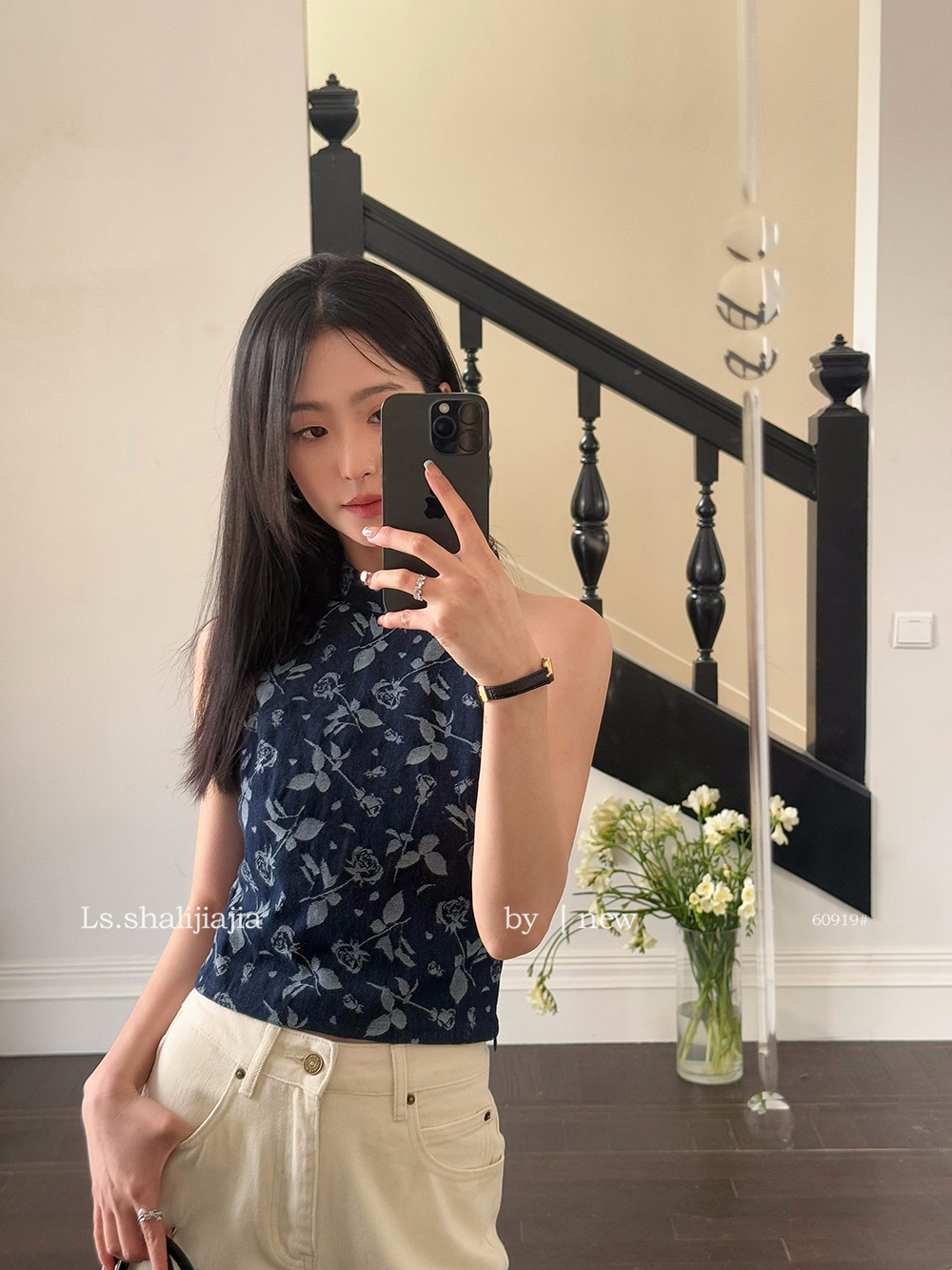 LS 프랑스 자카드 올 매치 홀터 조끼 데님 탑 2025 봄 여름 신작 셔츠 60919 #스토어 가기