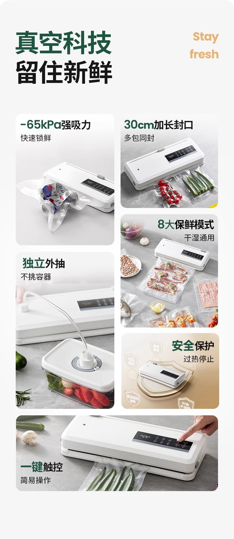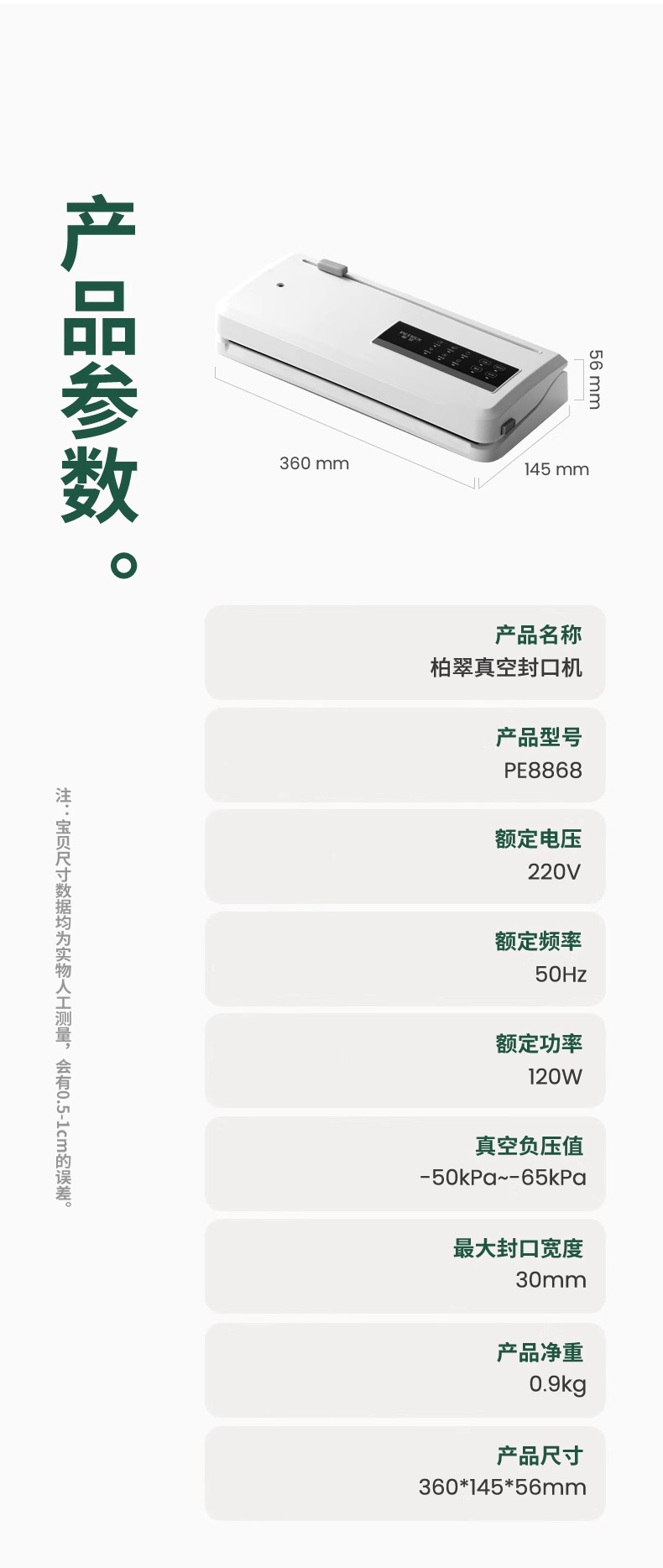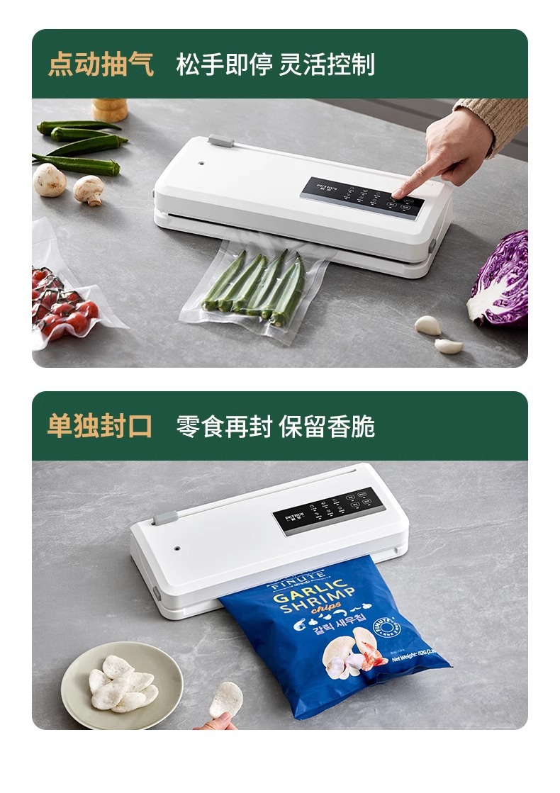 Baicui 진공 밀봉 기계 건조하고 젖은 이중 사용 신선한 유지 작은 가정용 식품 포장 진공 플라스틱 밀봉 기계 PE8868스토어 가기