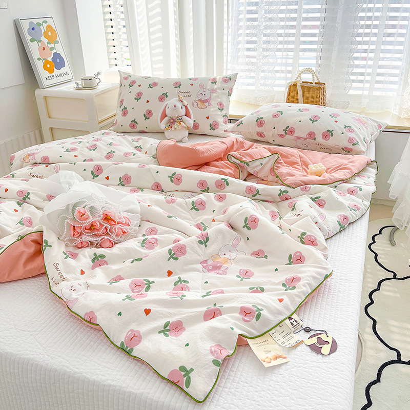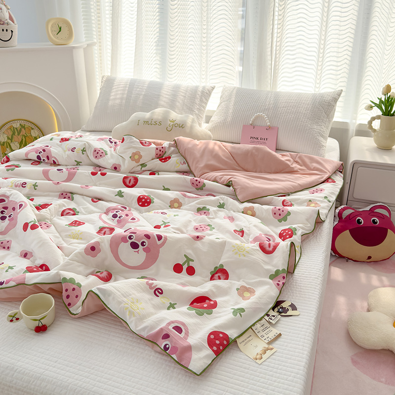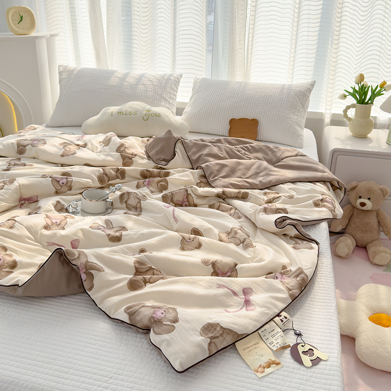 폭발 클래스 A 세척 된 코튼 콩 섬유 여름 이불 모성 및 유아 학년 이중층 원사 에어컨 얇은 이불 어린이 여름 쿨 퀼트 배치
