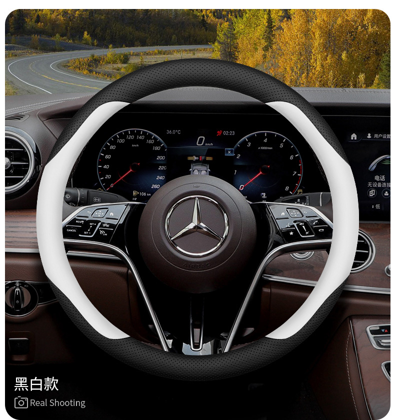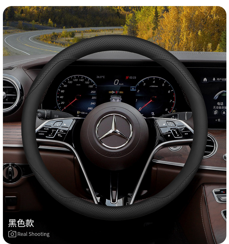 자동차 스티어링 휠 커버 사계절 유니버설 자동차 인테리어 핸들 커버 장식 용품 크로스 국경 전자 상거래 가죽 스티어링 휠 커버스토어 가기