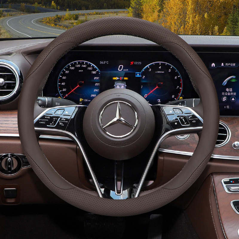 자동차 스티어링 휠 커버 사계절 유니버설 자동차 인테리어 핸들 커버 장식 용품 크로스 국경 전자 상거래 가죽 스티어링 휠 커버