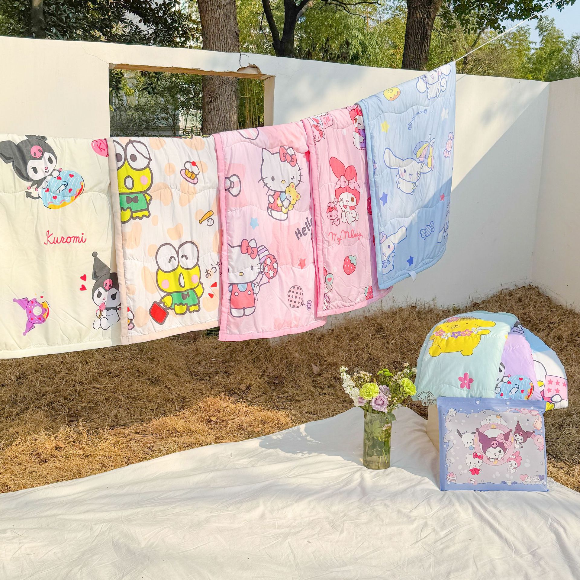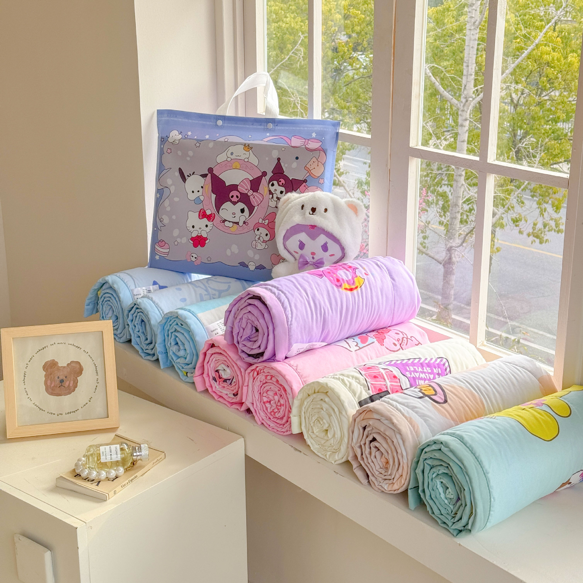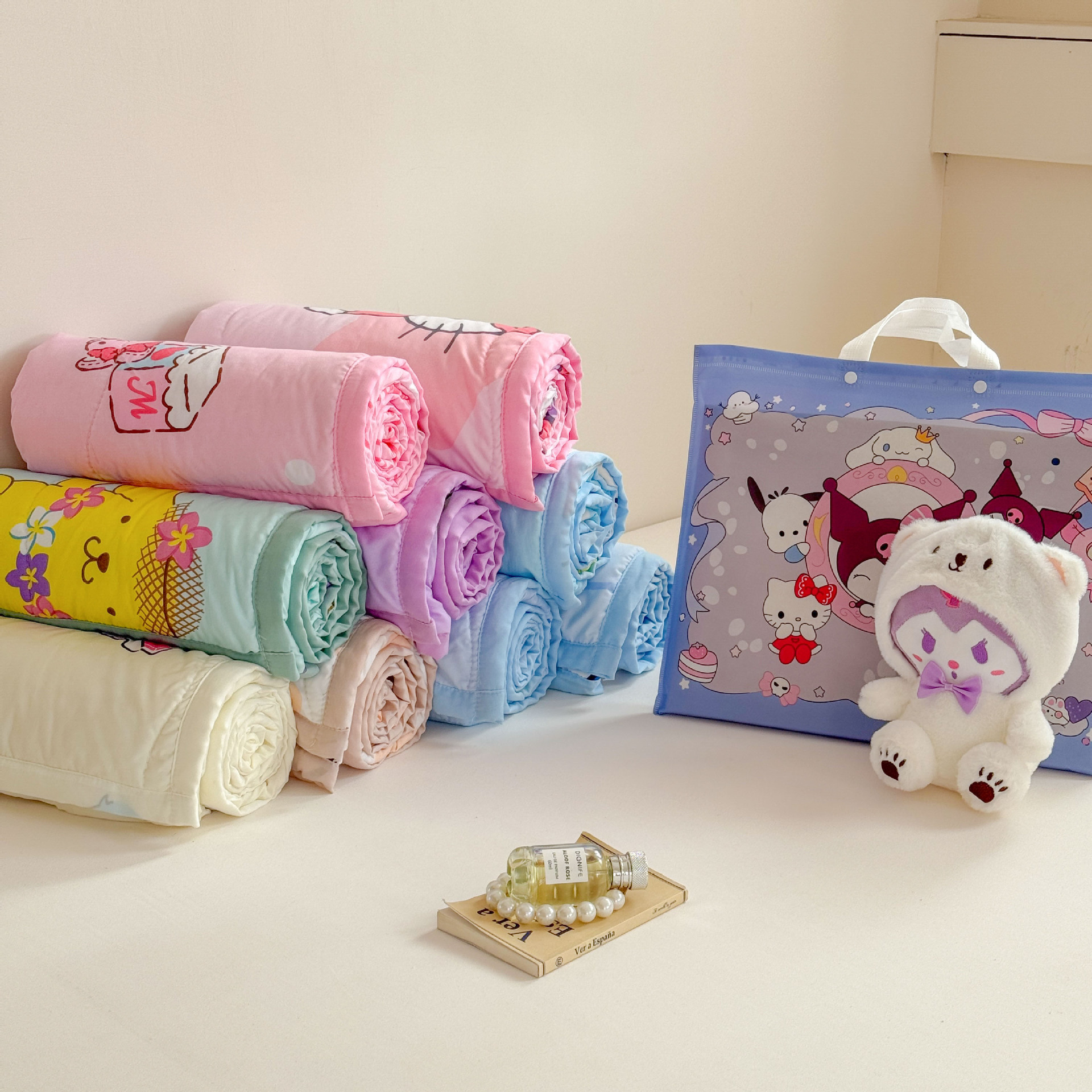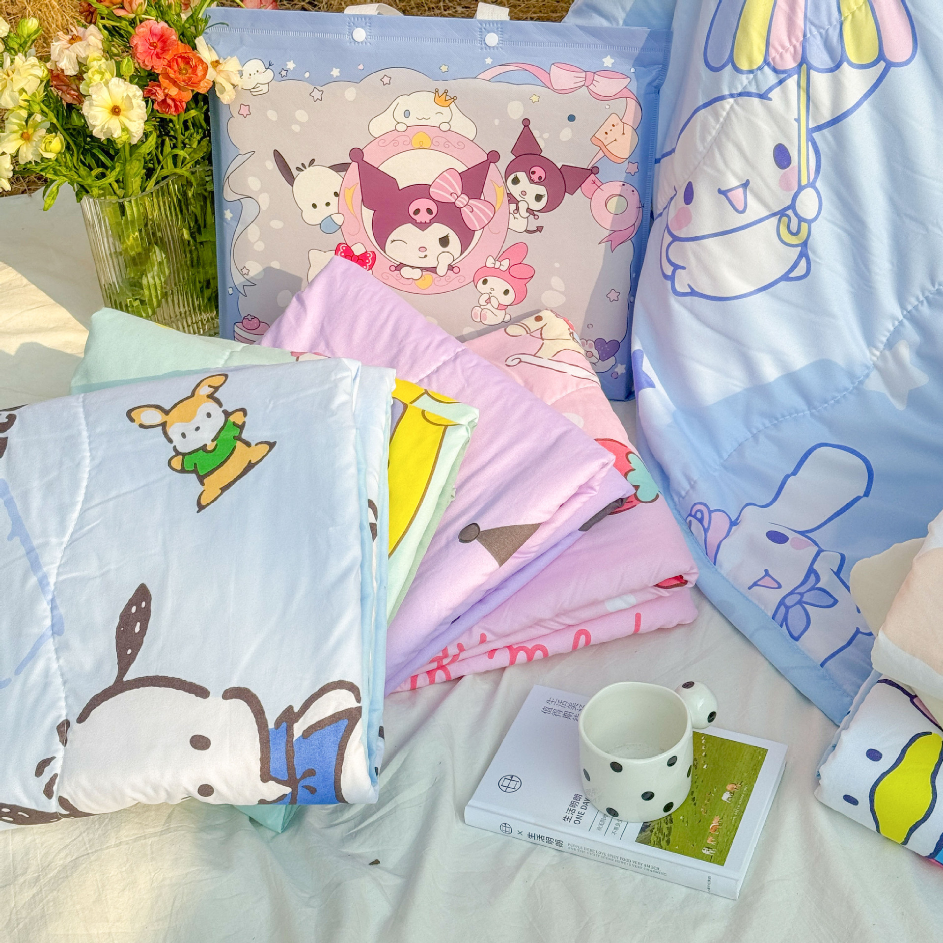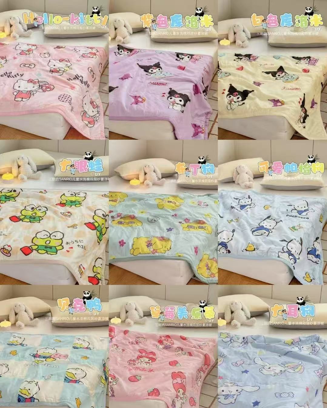 새로운 산리오 만화 어린이 여름 시원한 이불 피부 친화적 인 부드러운 낮잠 이불 구름 세척 면 에어컨 이불 도매스토어 가기