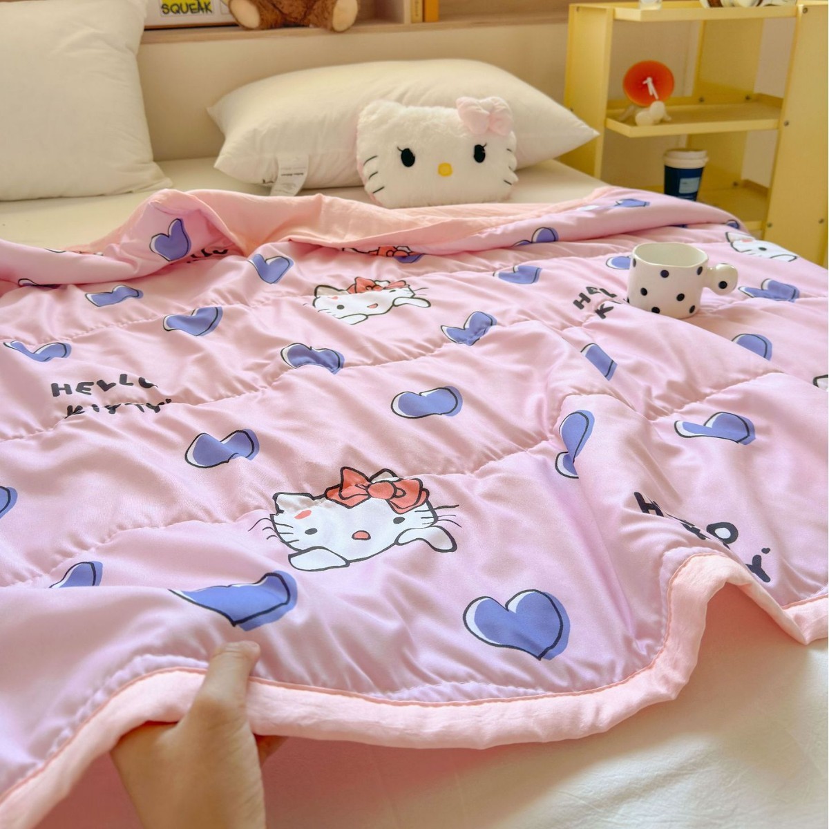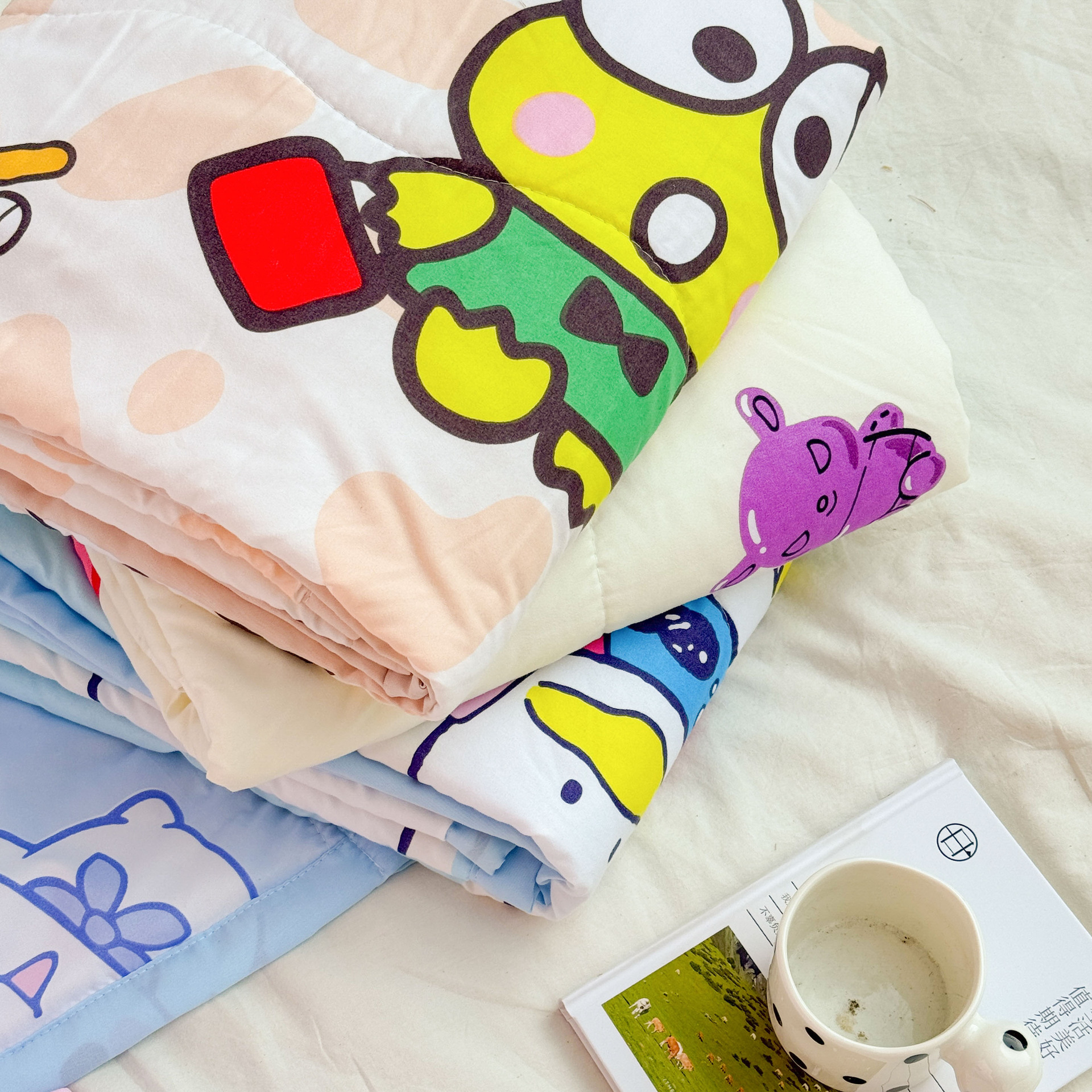 새로운 산리오 만화 어린이 여름 시원한 이불 피부 친화적 인 부드러운 낮잠 이불 구름 세척 면 에어컨 이불 도매