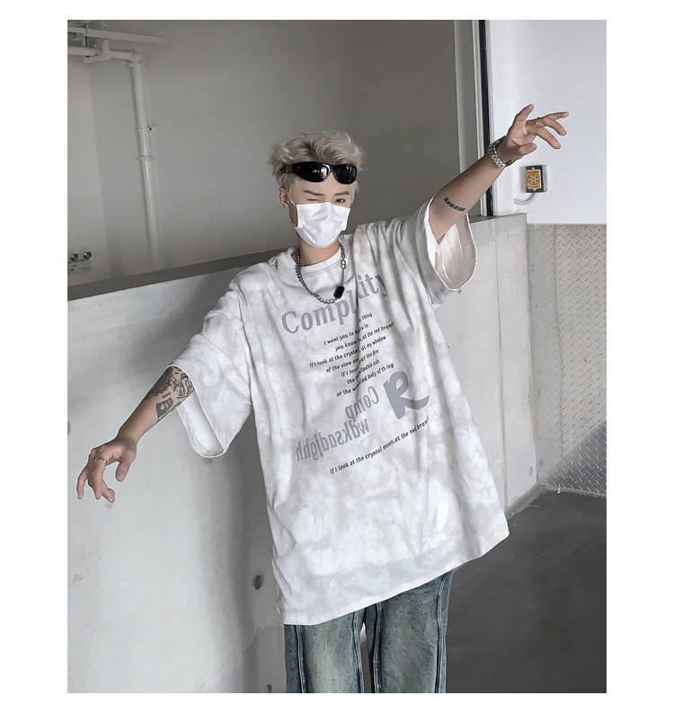 Guofeng 남자 반팔 티셔츠 2025 여름 새로운 넥타이 염색 인쇄 디자인 센스 루즈 올 매치 하이 스트리트 반소매 티셔츠스토어 가기
