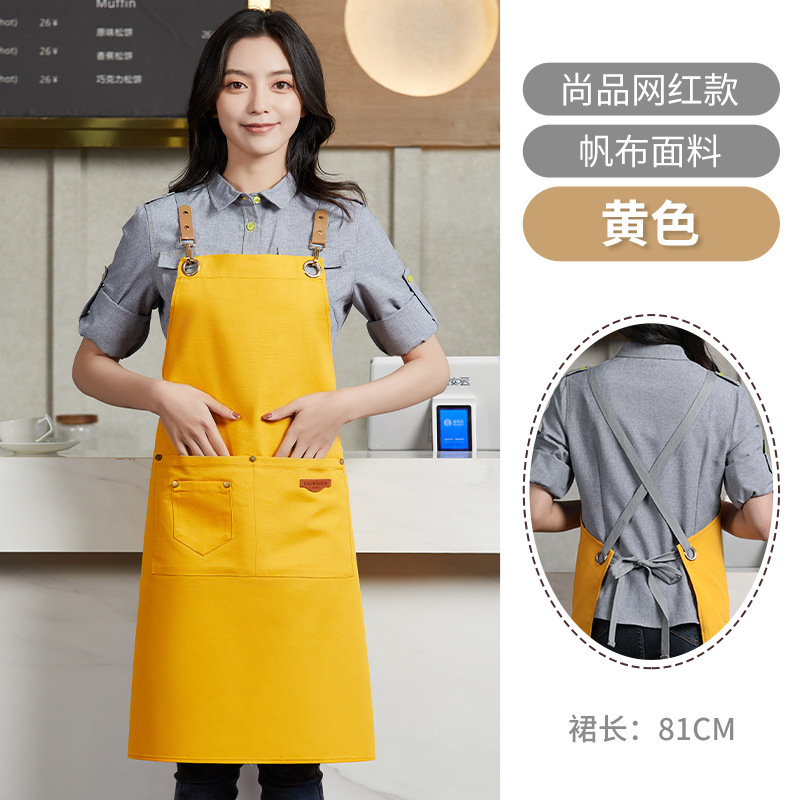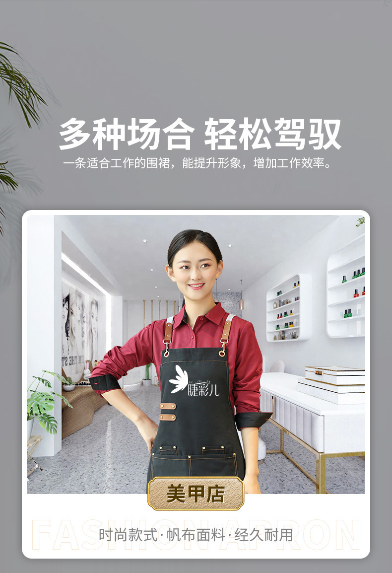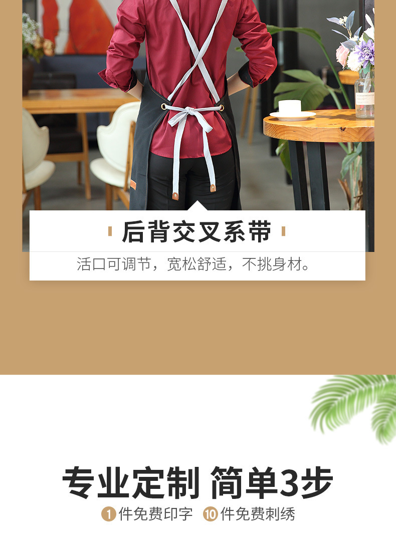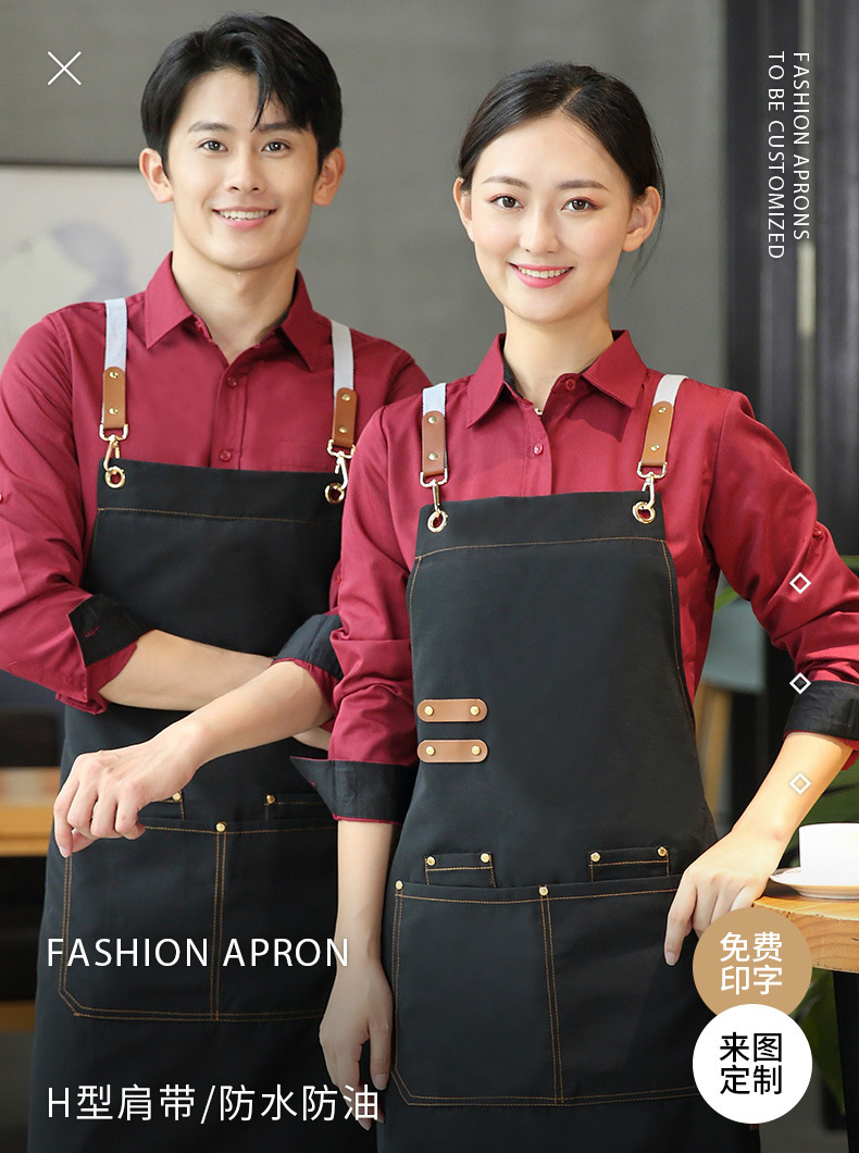 앞치마 맞춤 로고 인쇄 캔버스 웨이터 케이터링 특수 커피 우유 차 가게 레스토랑 작업 옷 여성용 방수