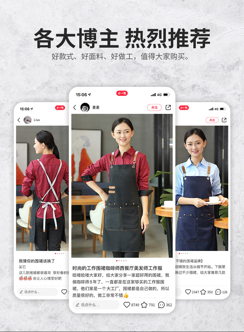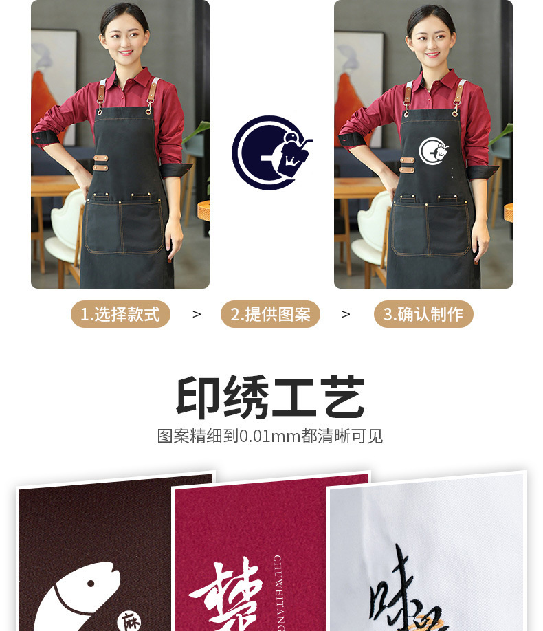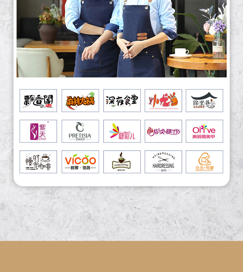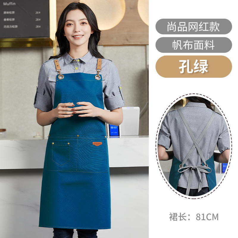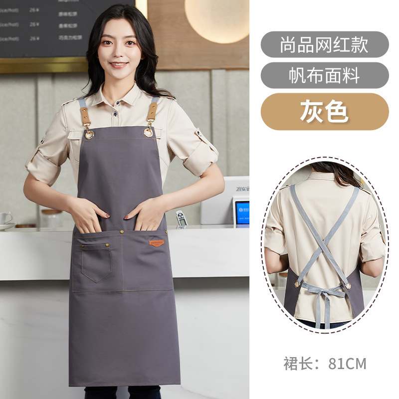 앞치마 맞춤 로고 인쇄 캔버스 웨이터 케이터링 특수 커피 우유 차 가게 레스토랑 작업 옷 여성용 방수