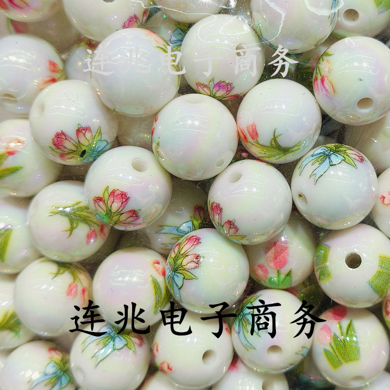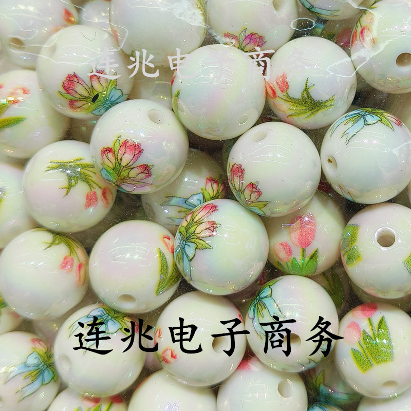 아크릴 인쇄 튤립 꽃 라운드 구슬 16 수직 구멍 DIY Tikk 라이브 전화 문자열 펜 액세서리스토어 가기