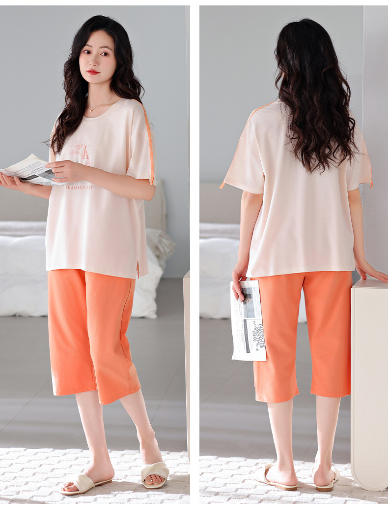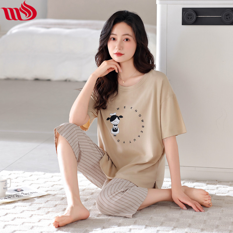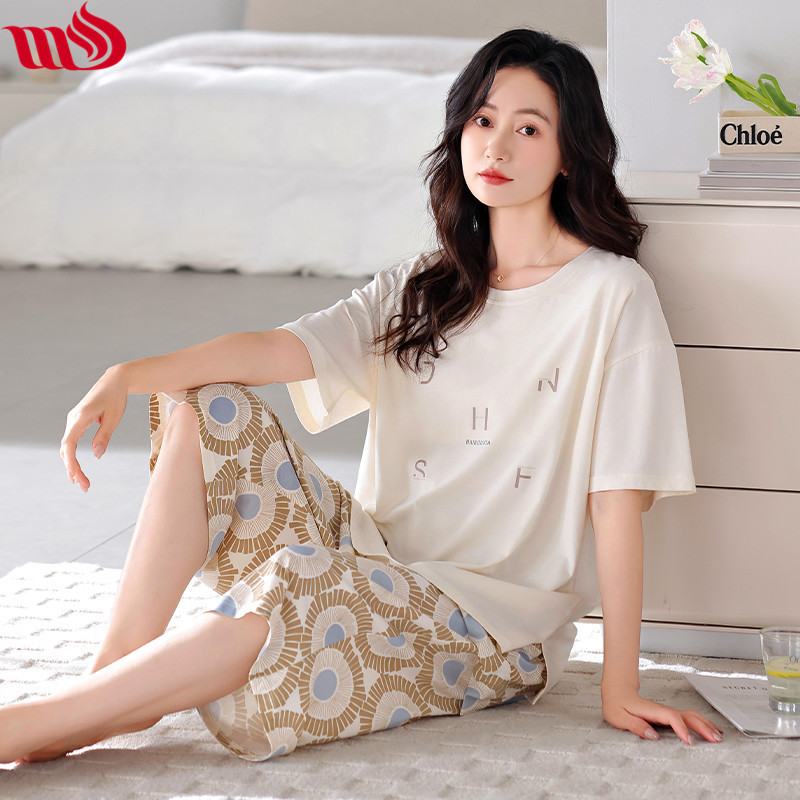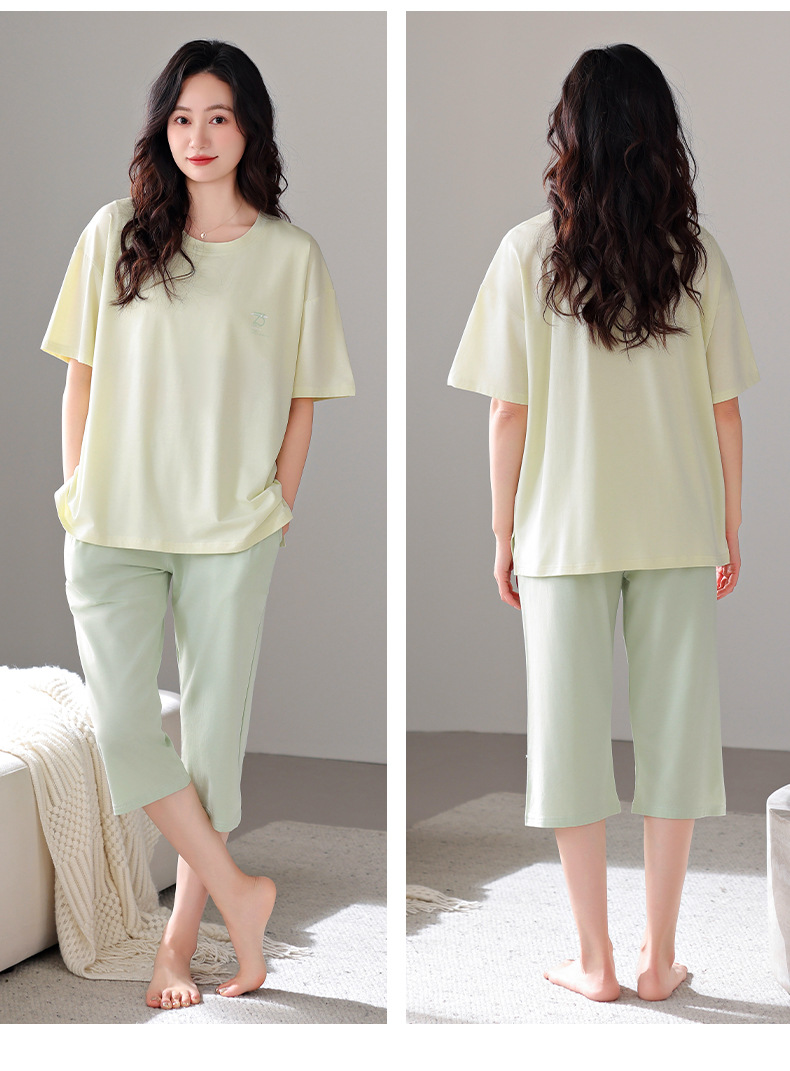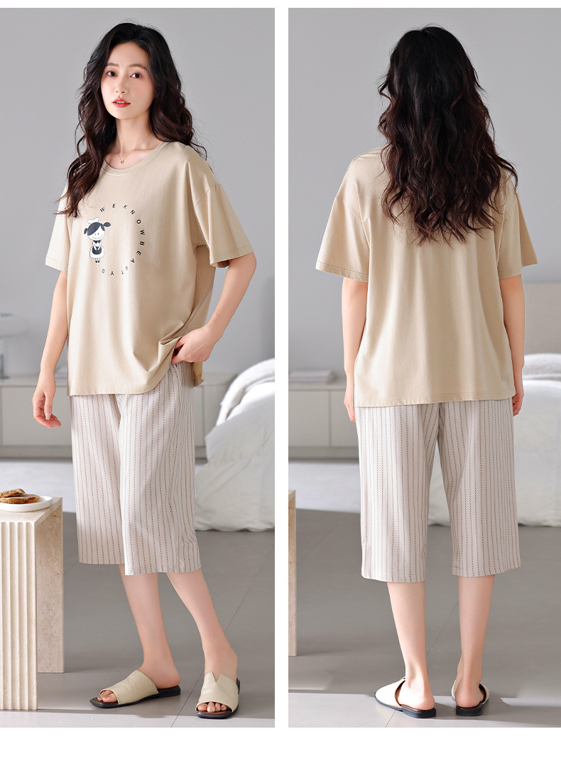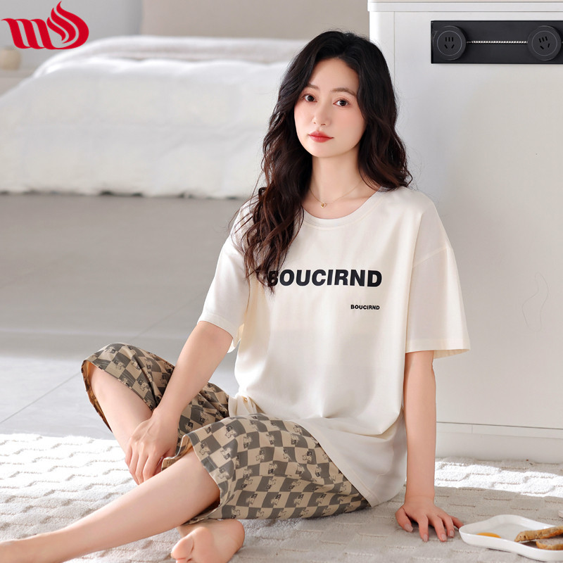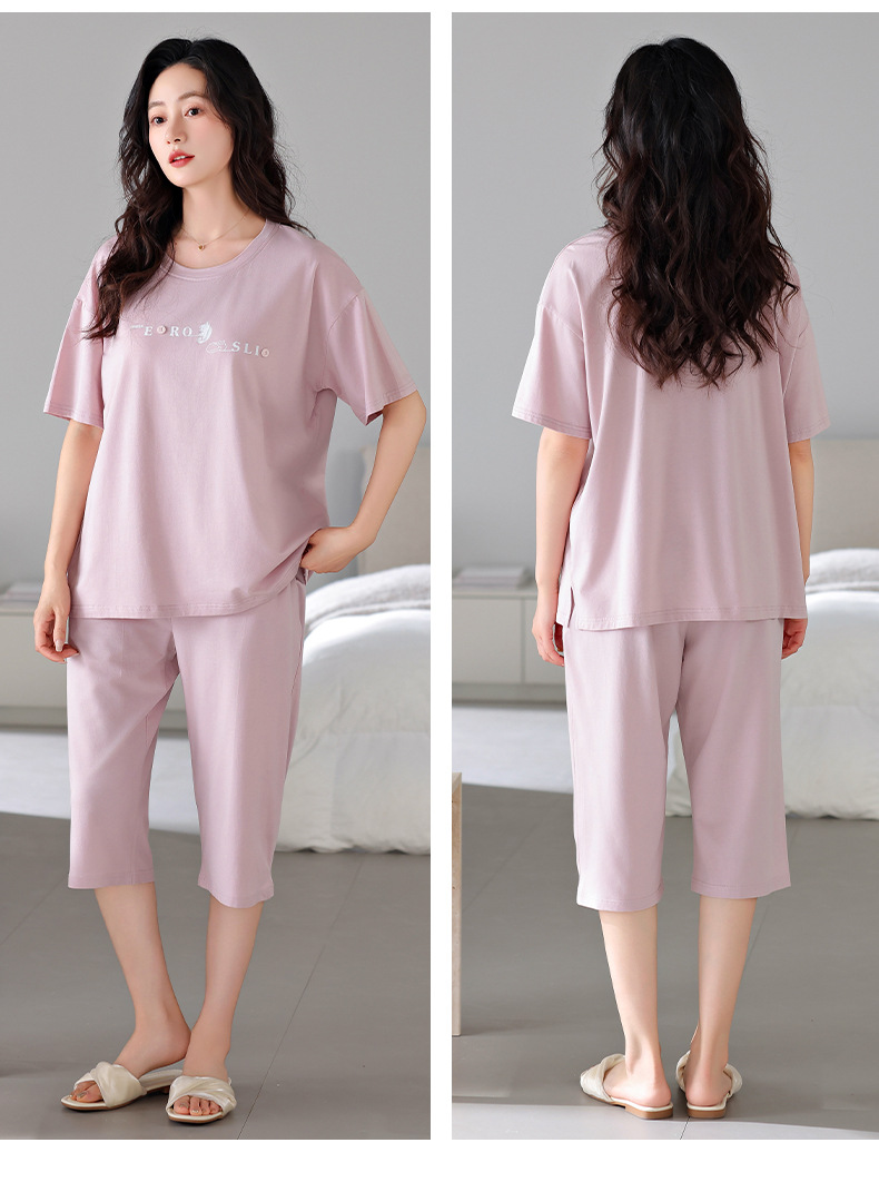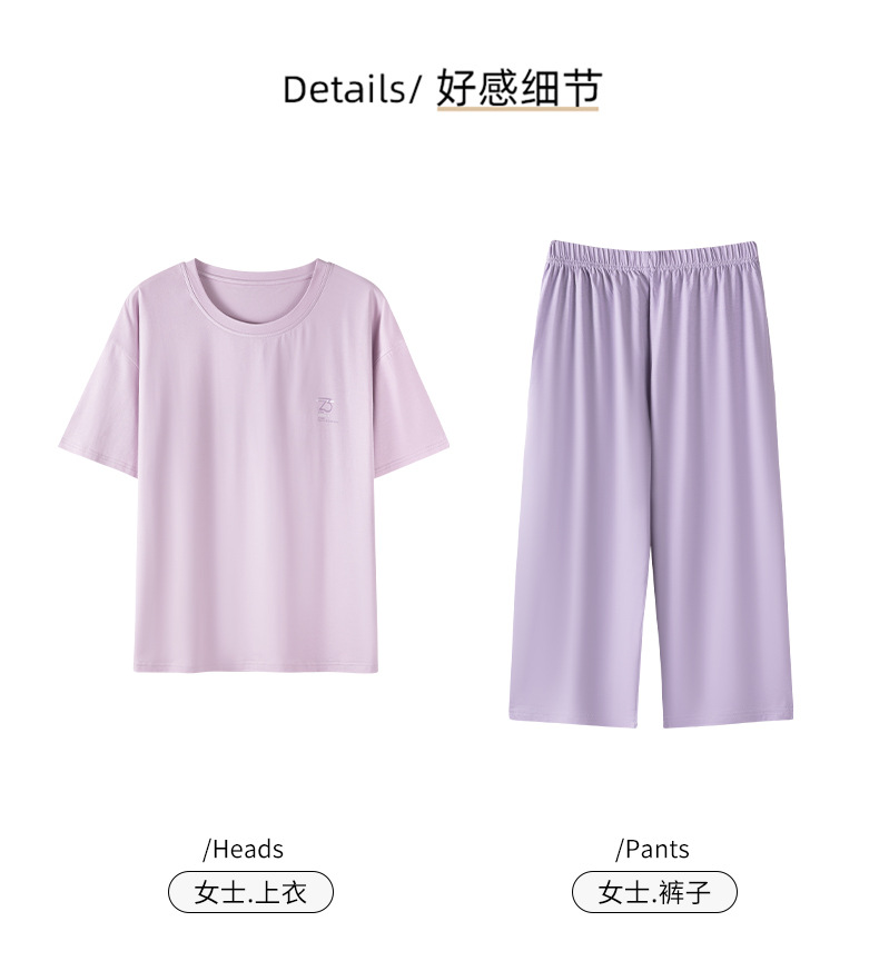 물롱 귀족 가족 잠옷 여성 여름 2025 새로운 모달 반팔 카프리 바지, 가슴 패드 쿨 느낌 홈 옷스토어 가기