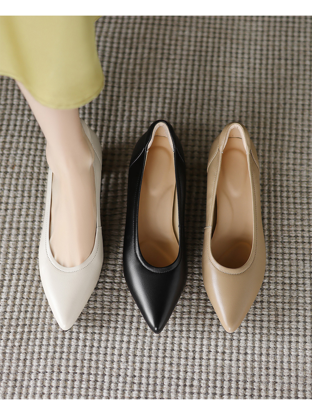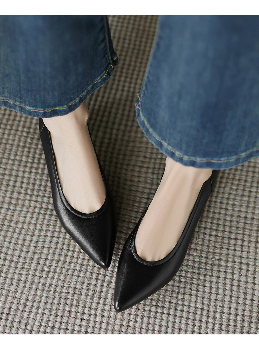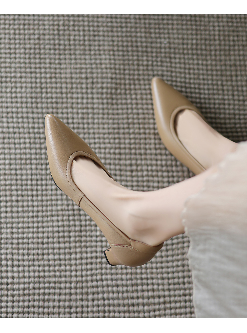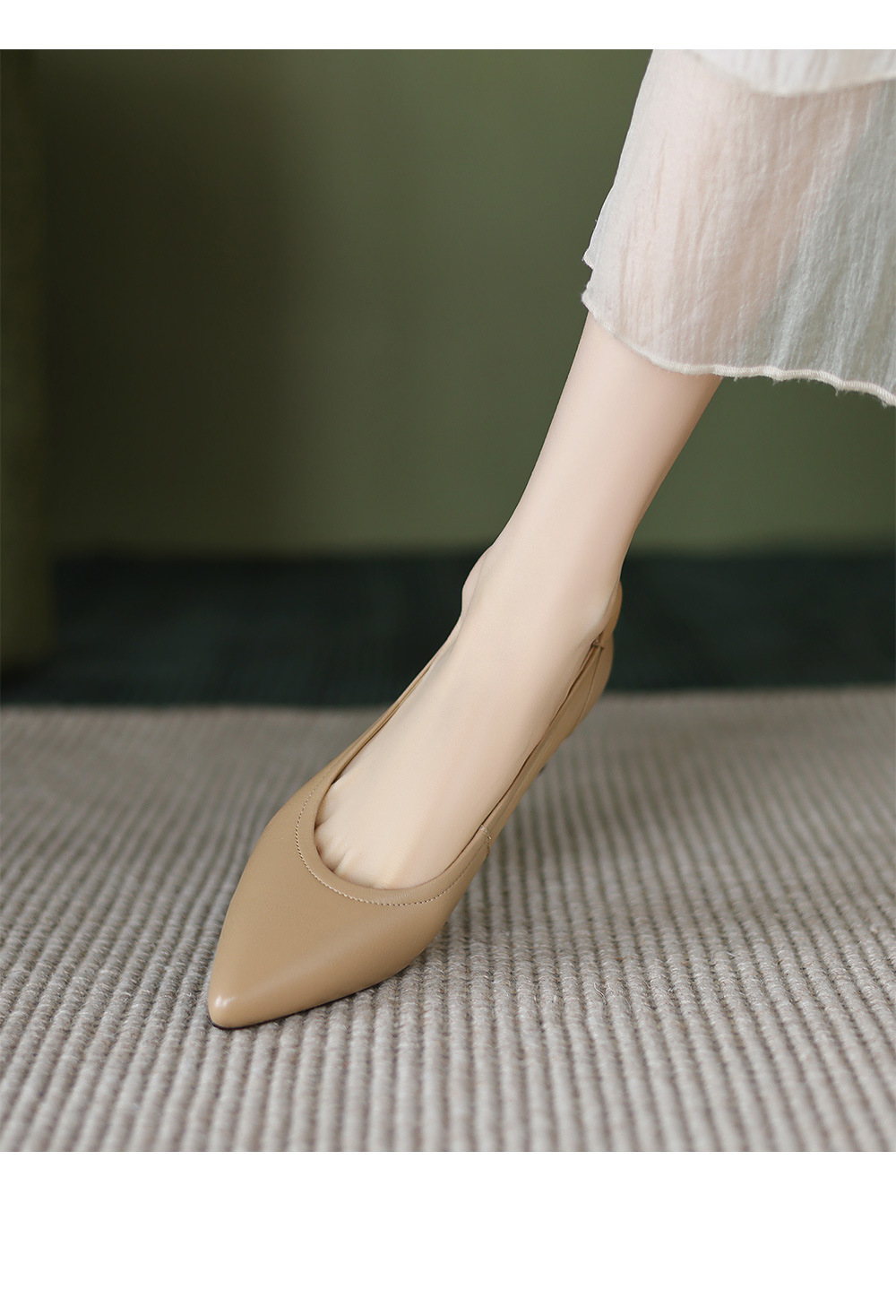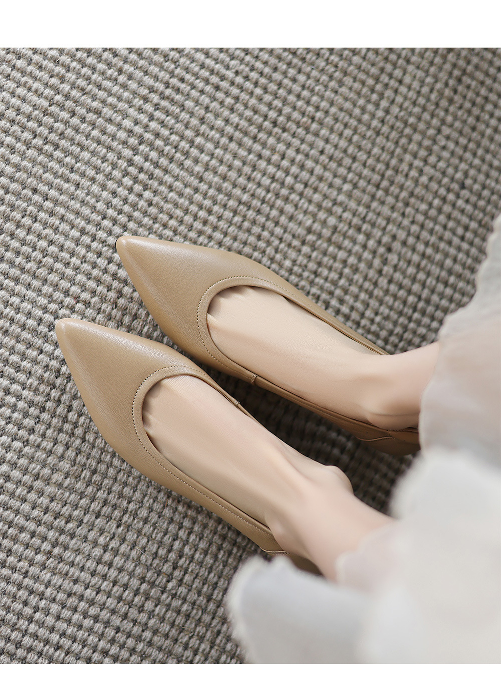 4cm 낮은 굽의 양가죽 뾰족코 얕은 구두 여성용 봄 여름 신상 여성화 누드 컬러 심플 출퇴근용 여성화스토어 가기