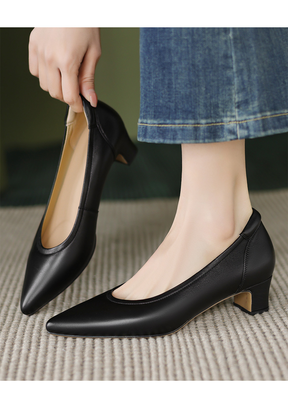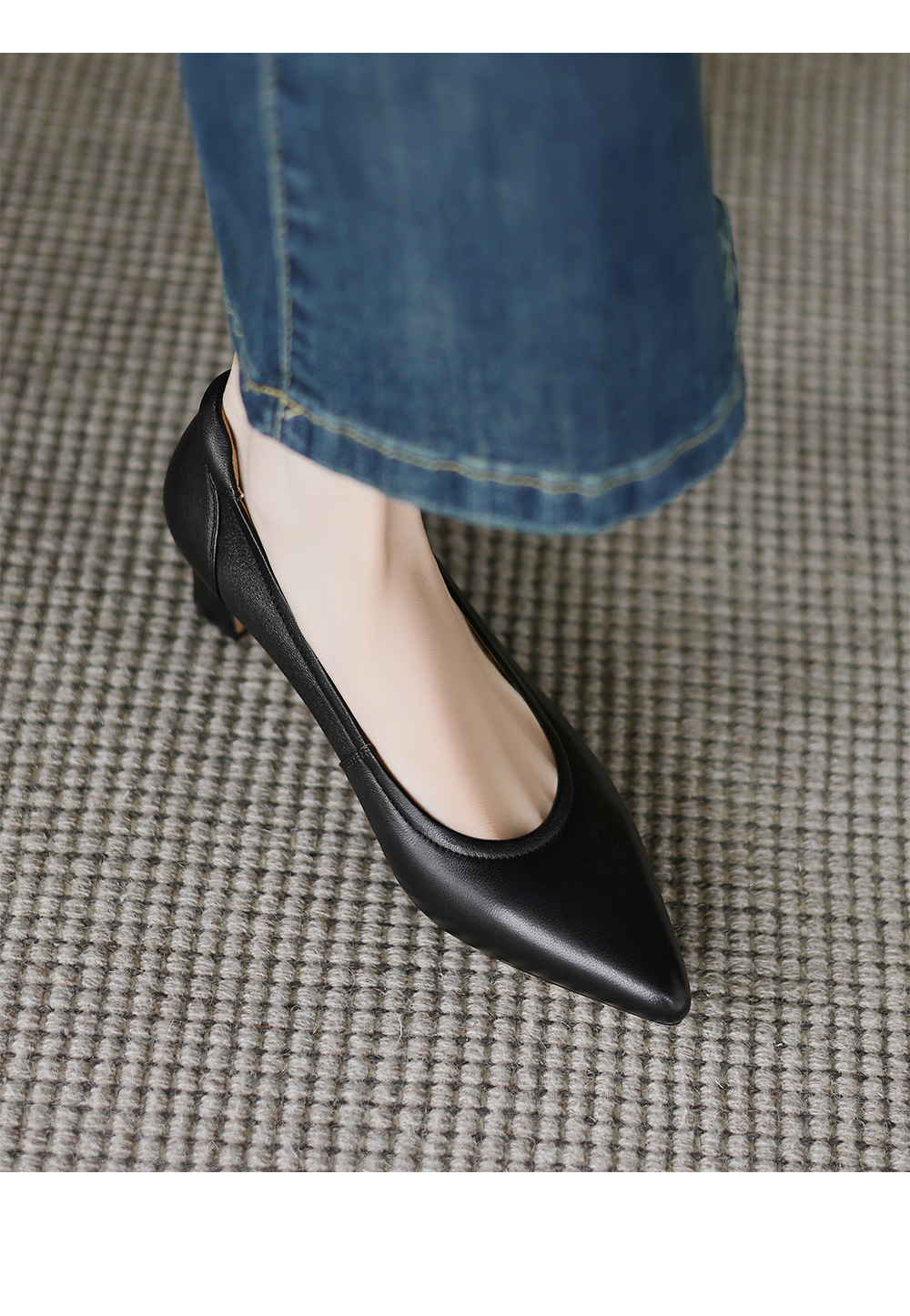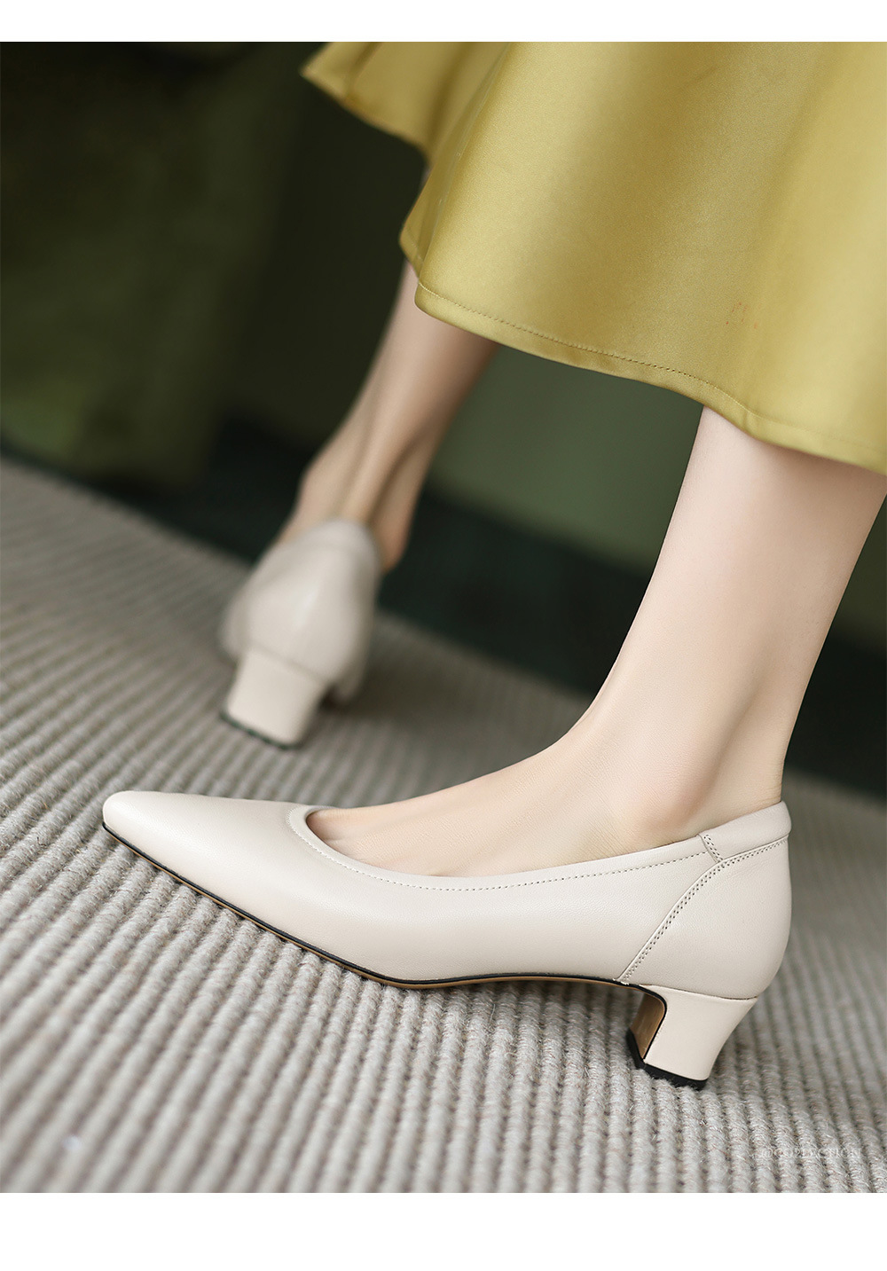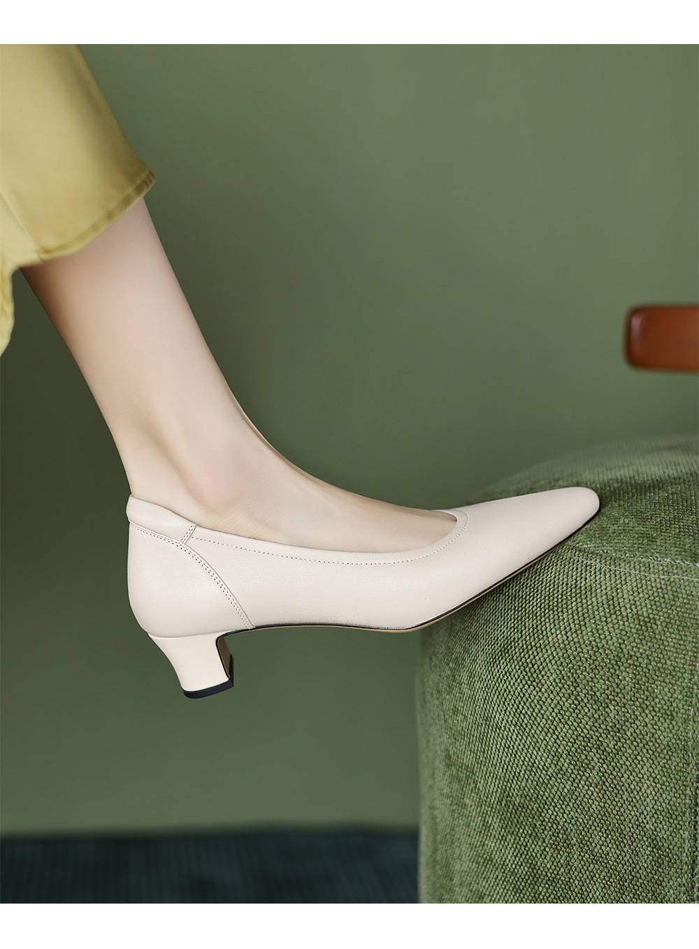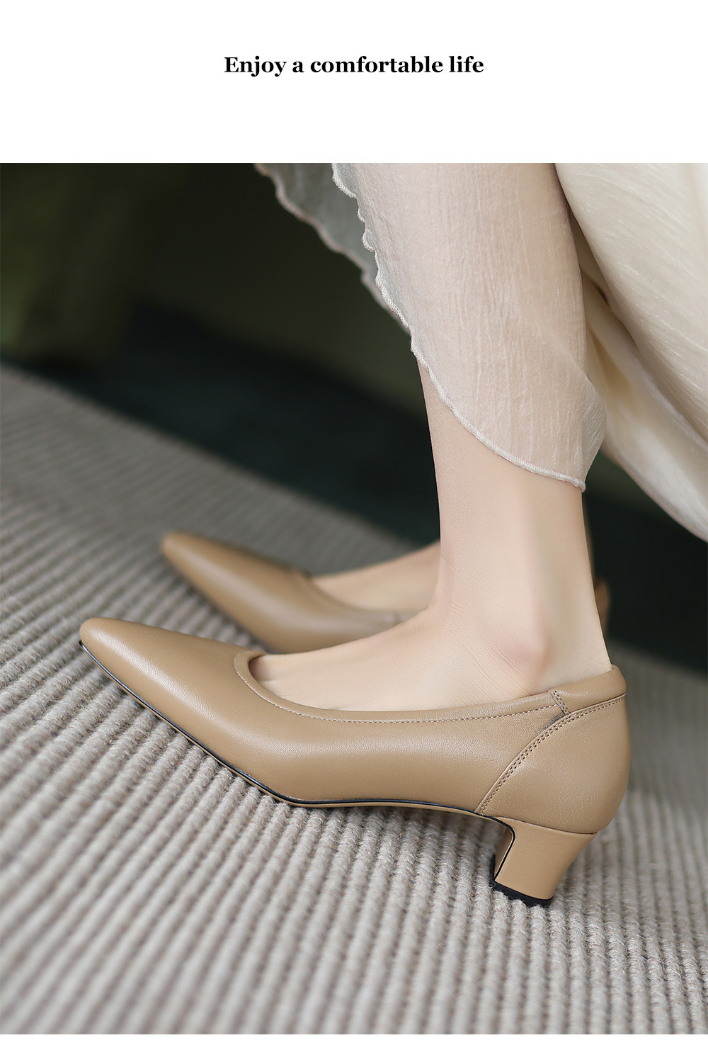 4cm 낮은 굽의 양가죽 뾰족코 얕은 구두 여성용 봄 여름 신상 여성화 누드 컬러 심플 출퇴근용 여성화스토어 가기